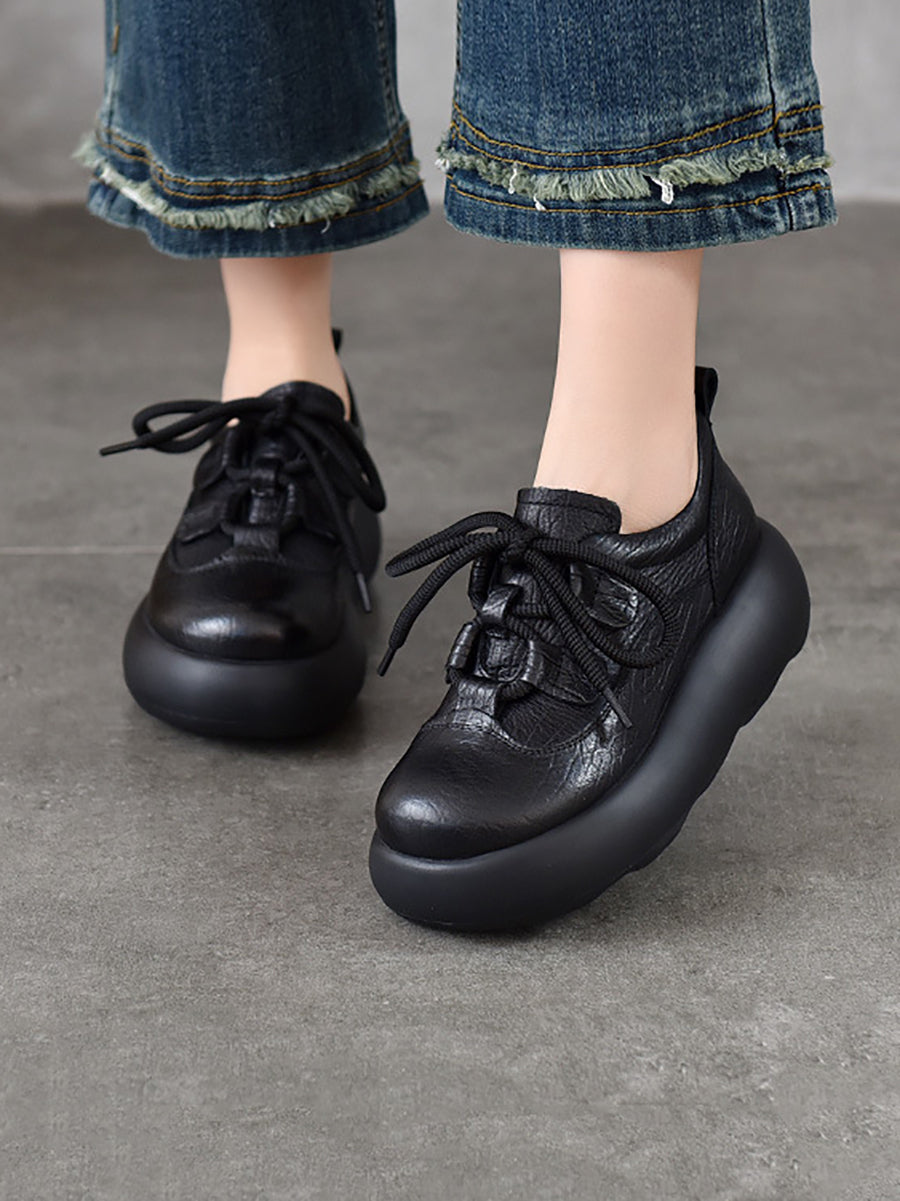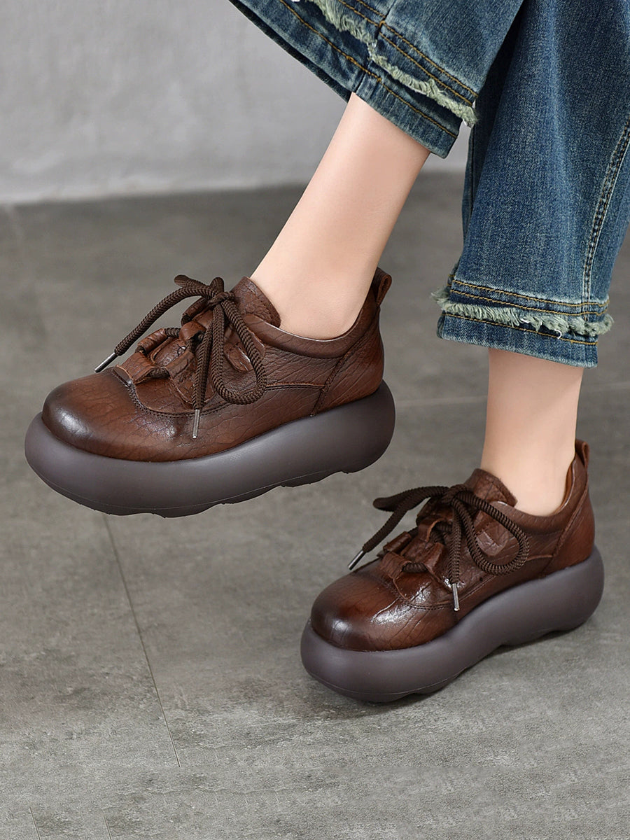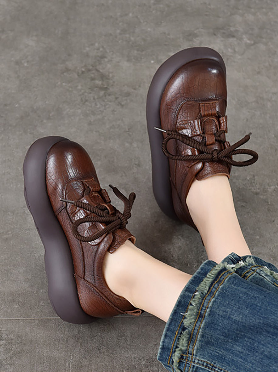 Vintage-Plateauschuhe aus echtem Leder für Damen