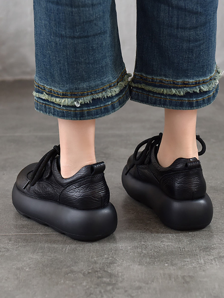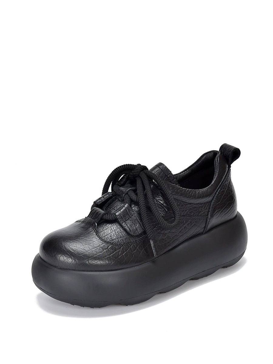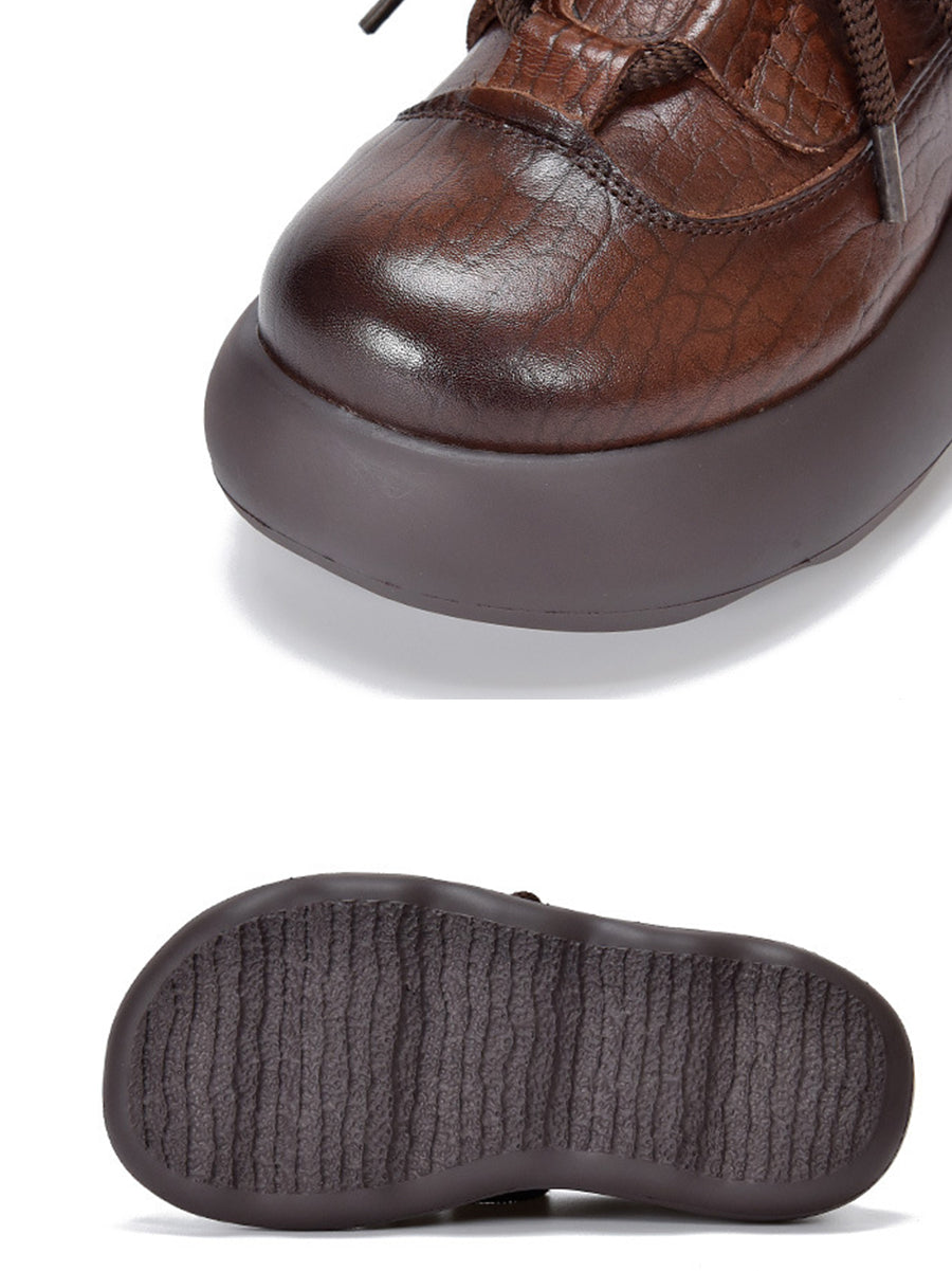 Vintage-Plateauschuhe aus echtem Leder für Damen