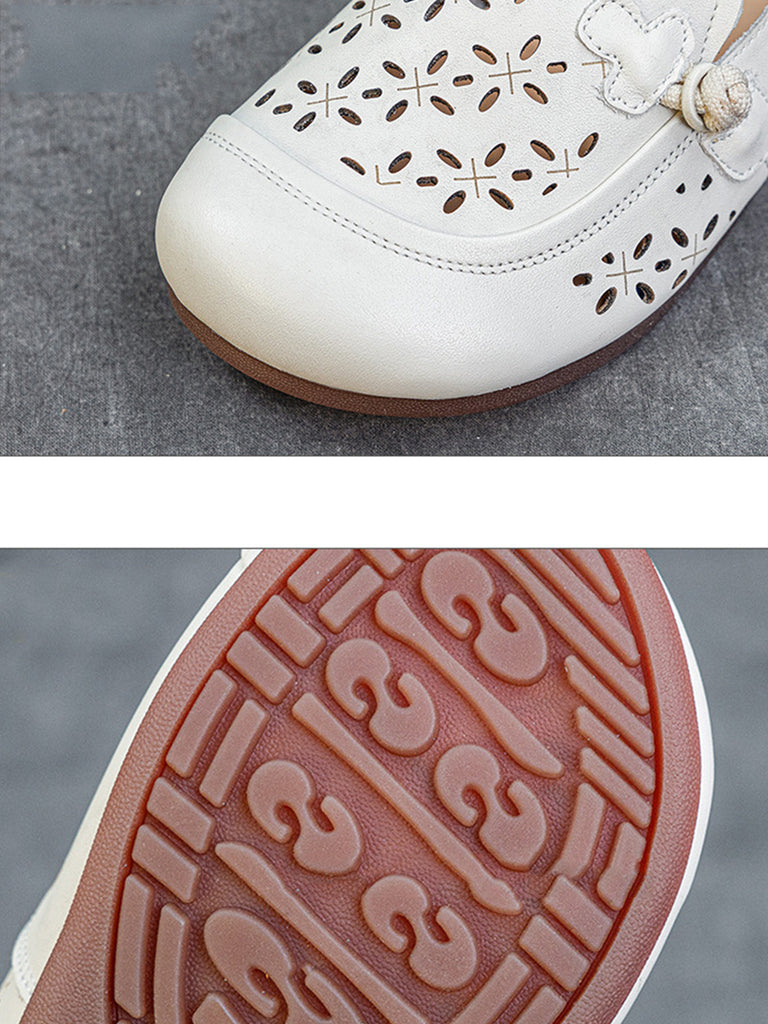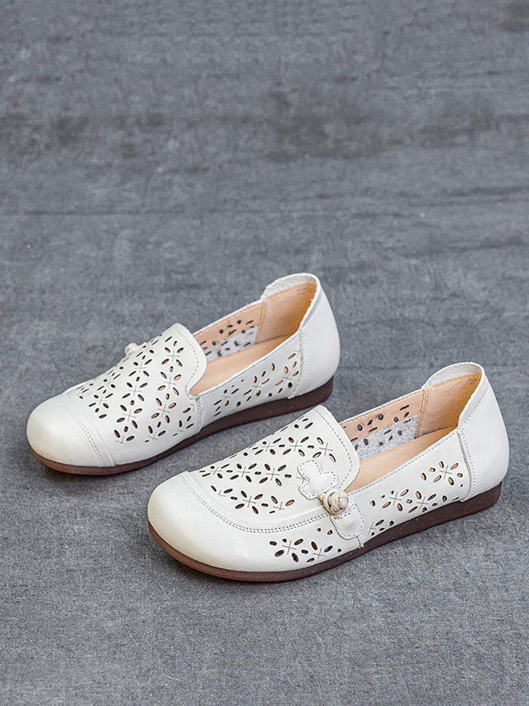Damen Vintage Echtleder Hohle Flache Schuhe