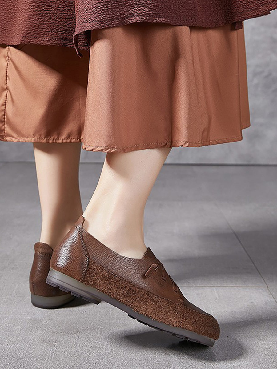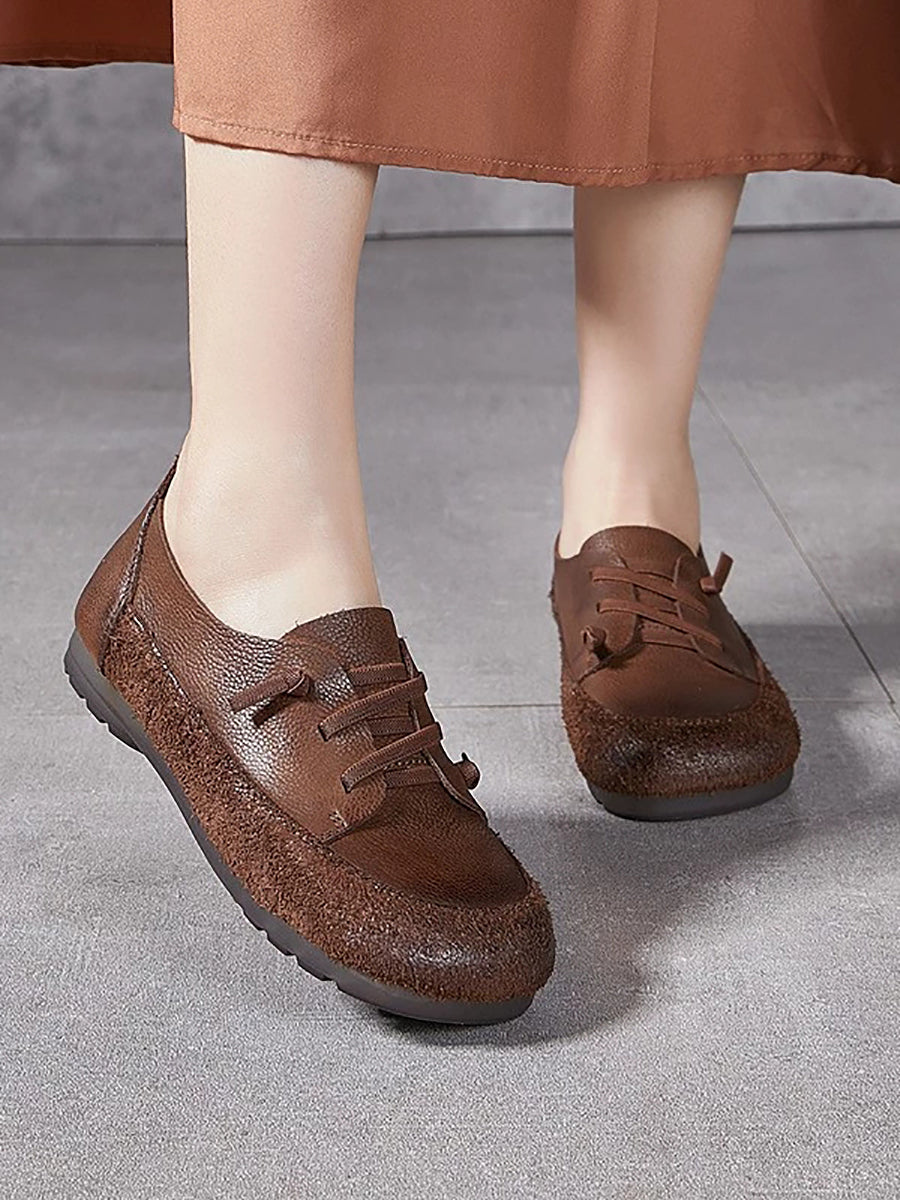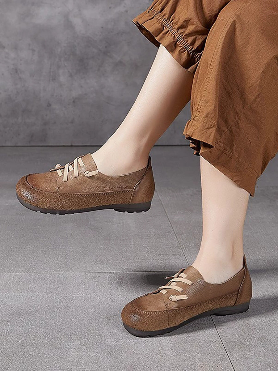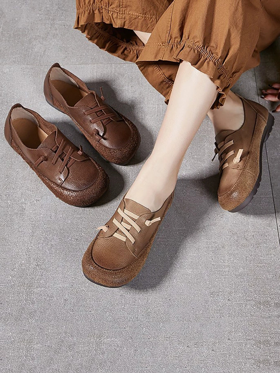 Vintage-Schuhe aus echtem Leder für Damen mit niedrigem Absatz