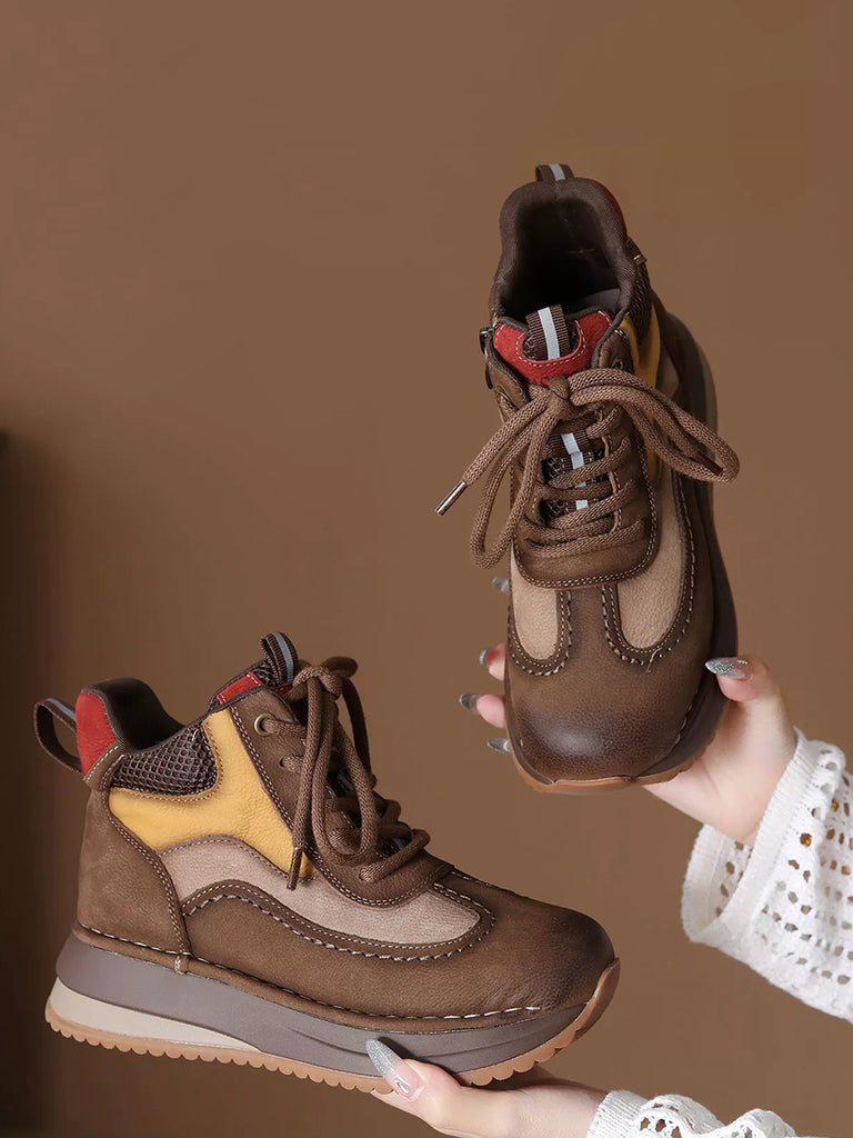 Damen Vintage Echtleder Gespleißte High-Top Schuhe