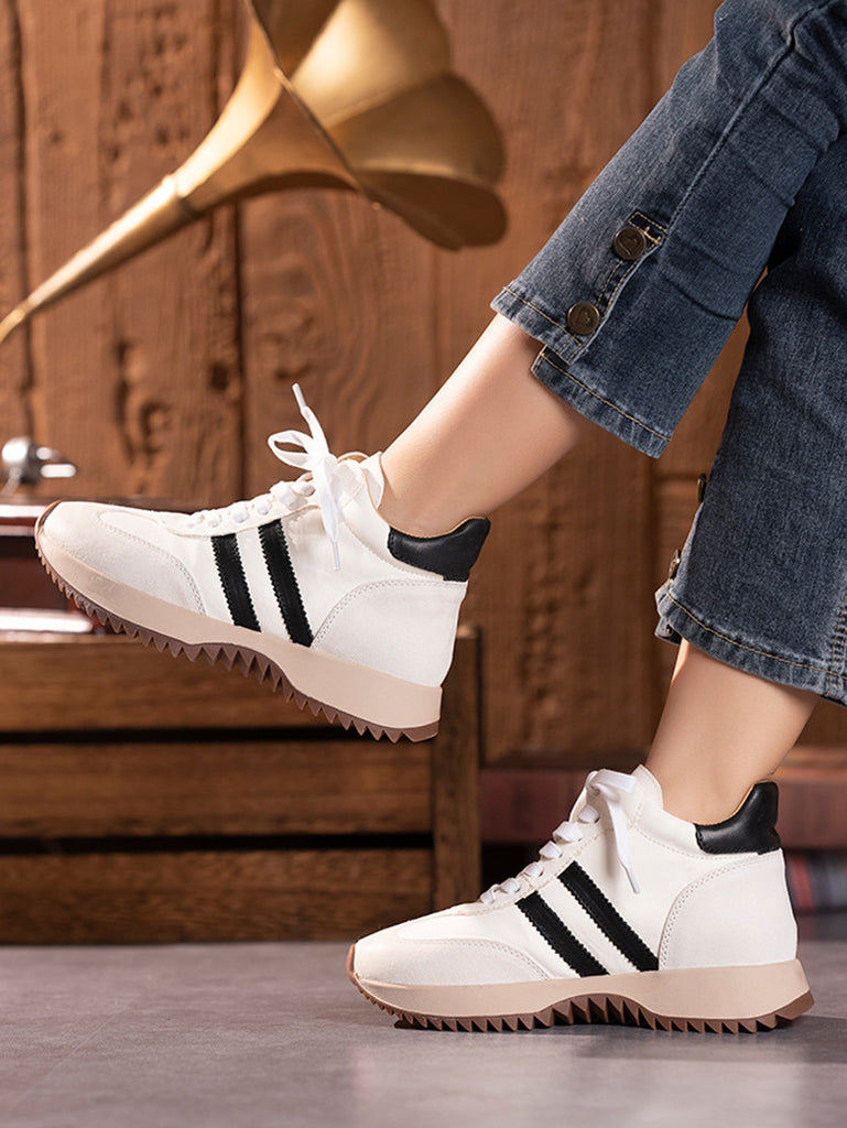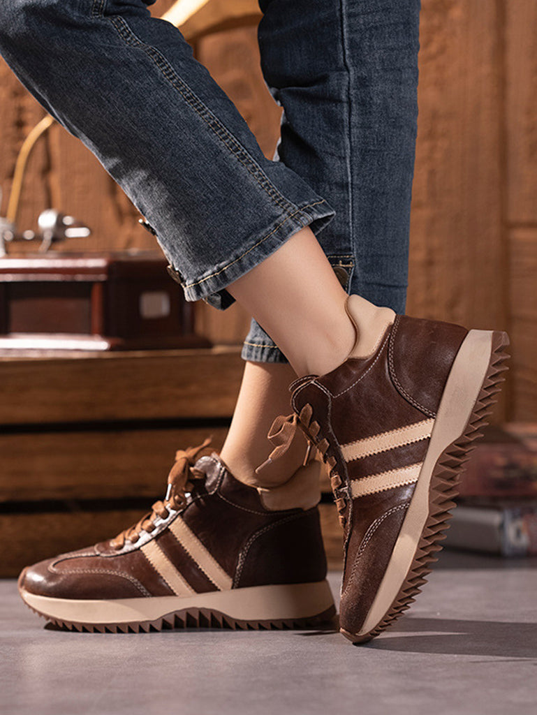 Damen Vintage Echtleder Spliced Plateauschuhe