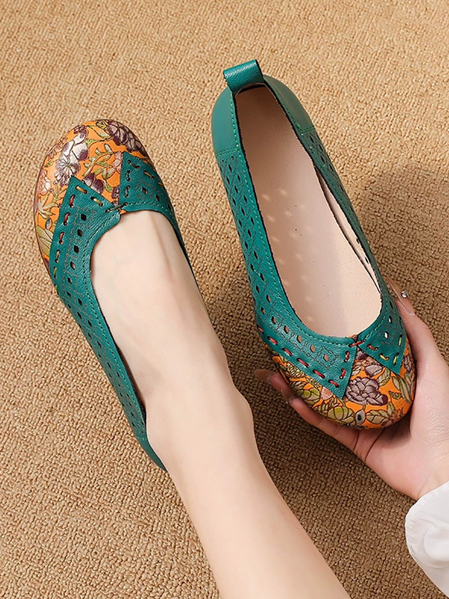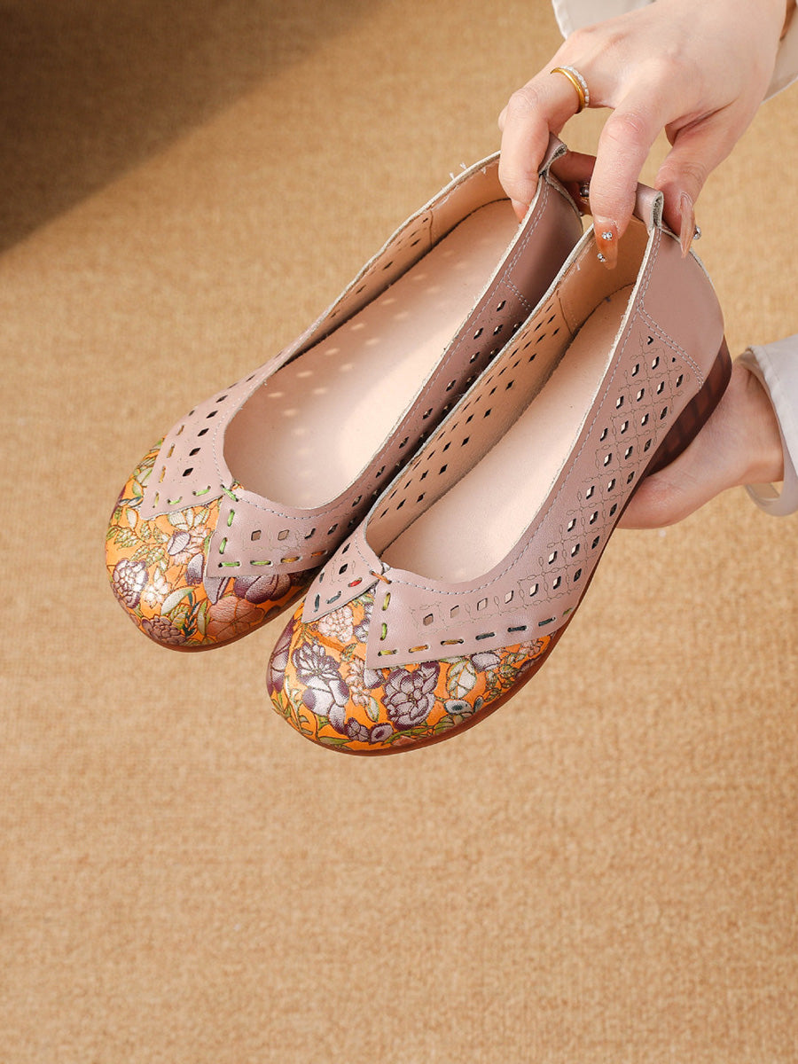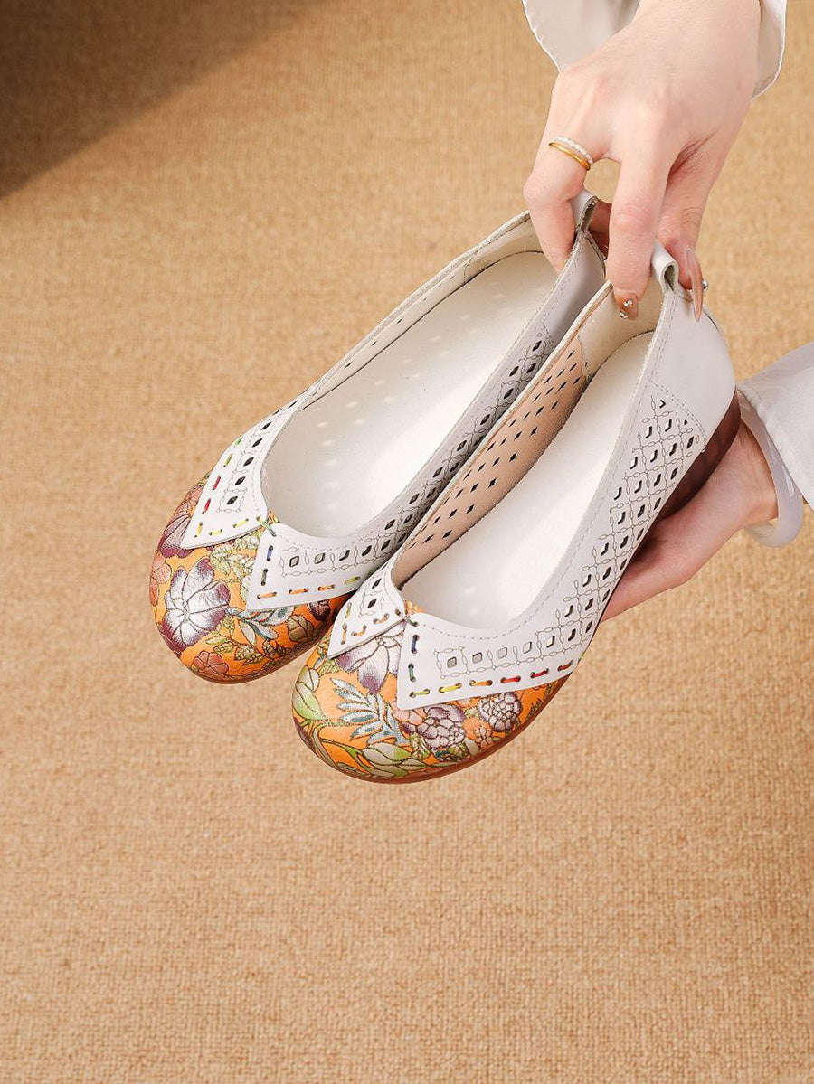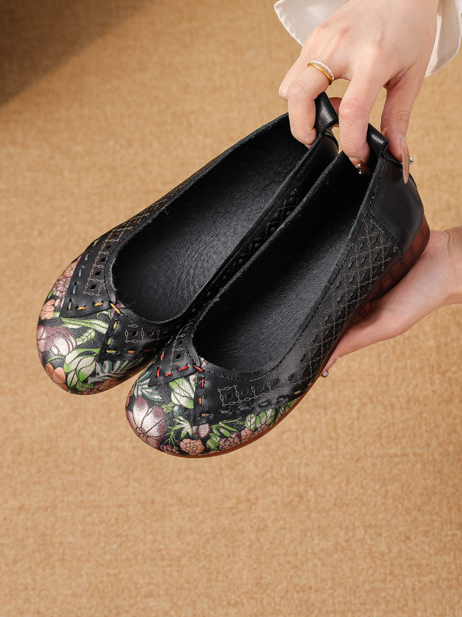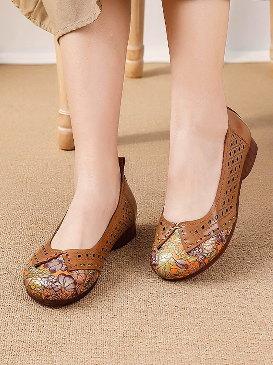 Vintage-Lederschuhe für Damen mit niedrigem Absatz