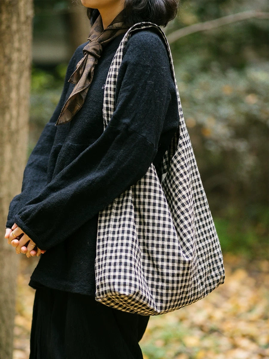 Vintage karierte Schultertasche für Damen