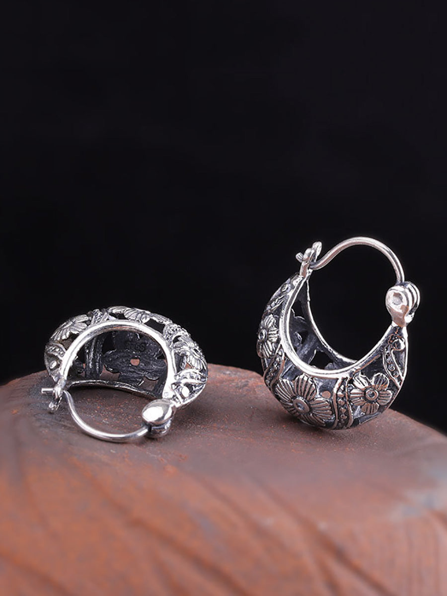 Frauen Vintage S925Sliver Aushöhlen Blume Ohrringe