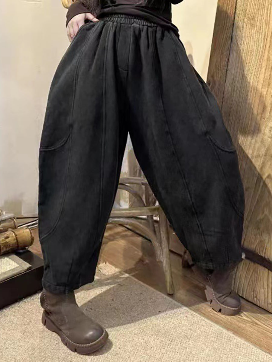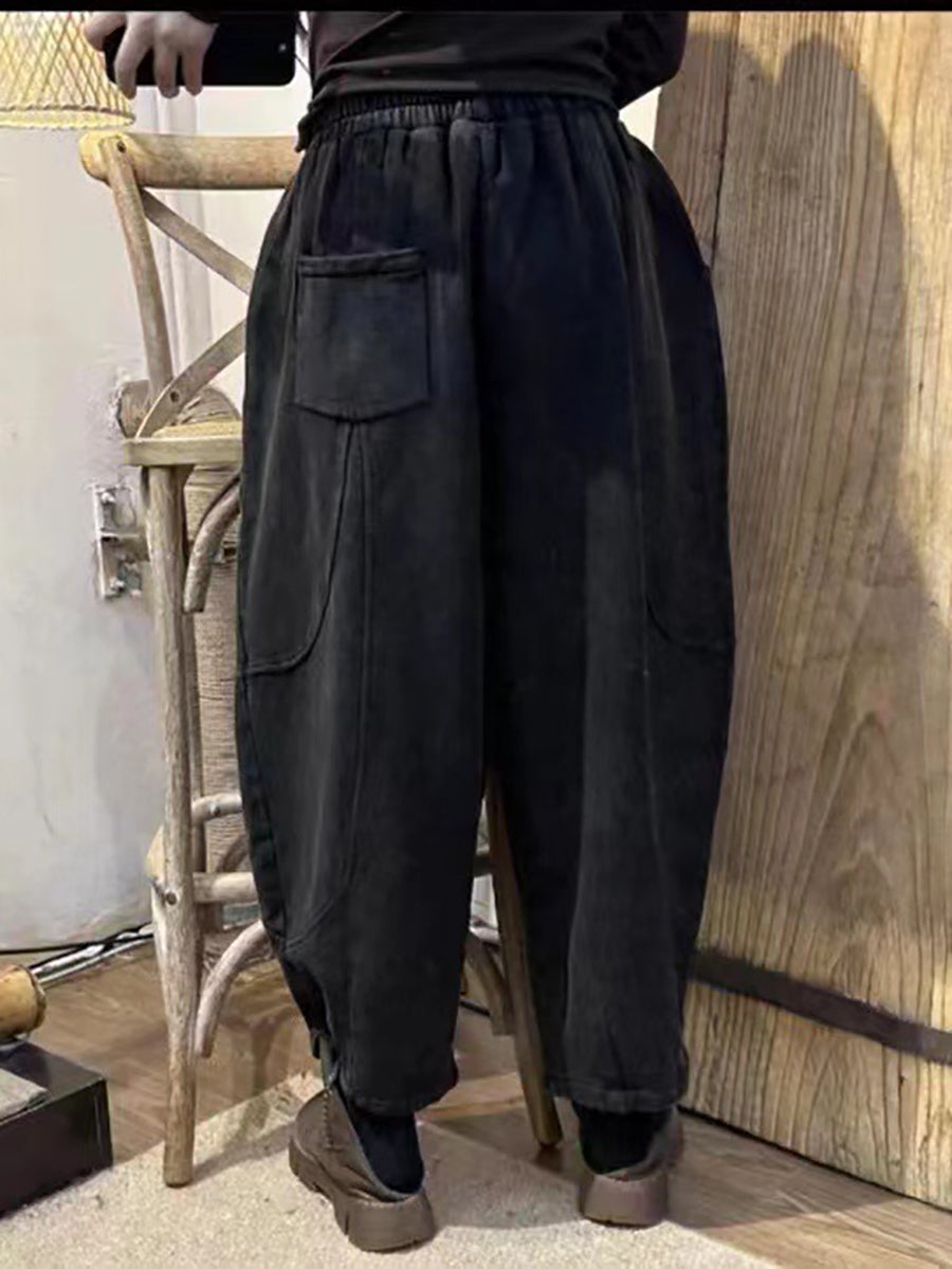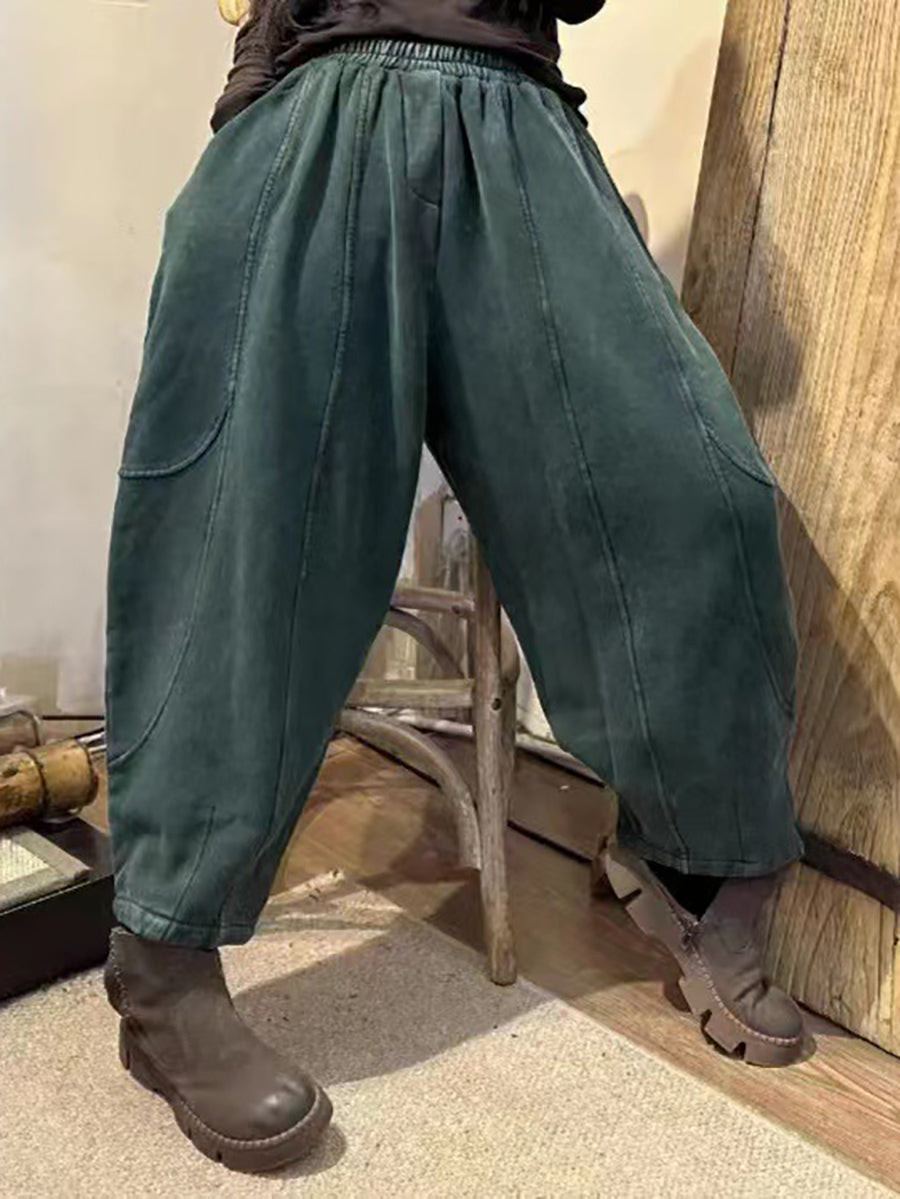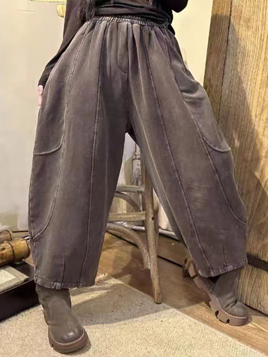 Damen Vintage getragene solide gespleißte lose Hose