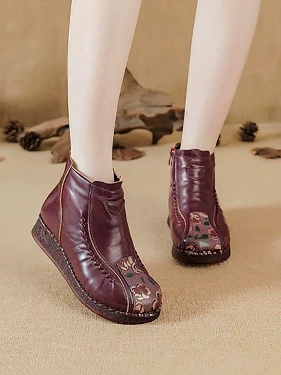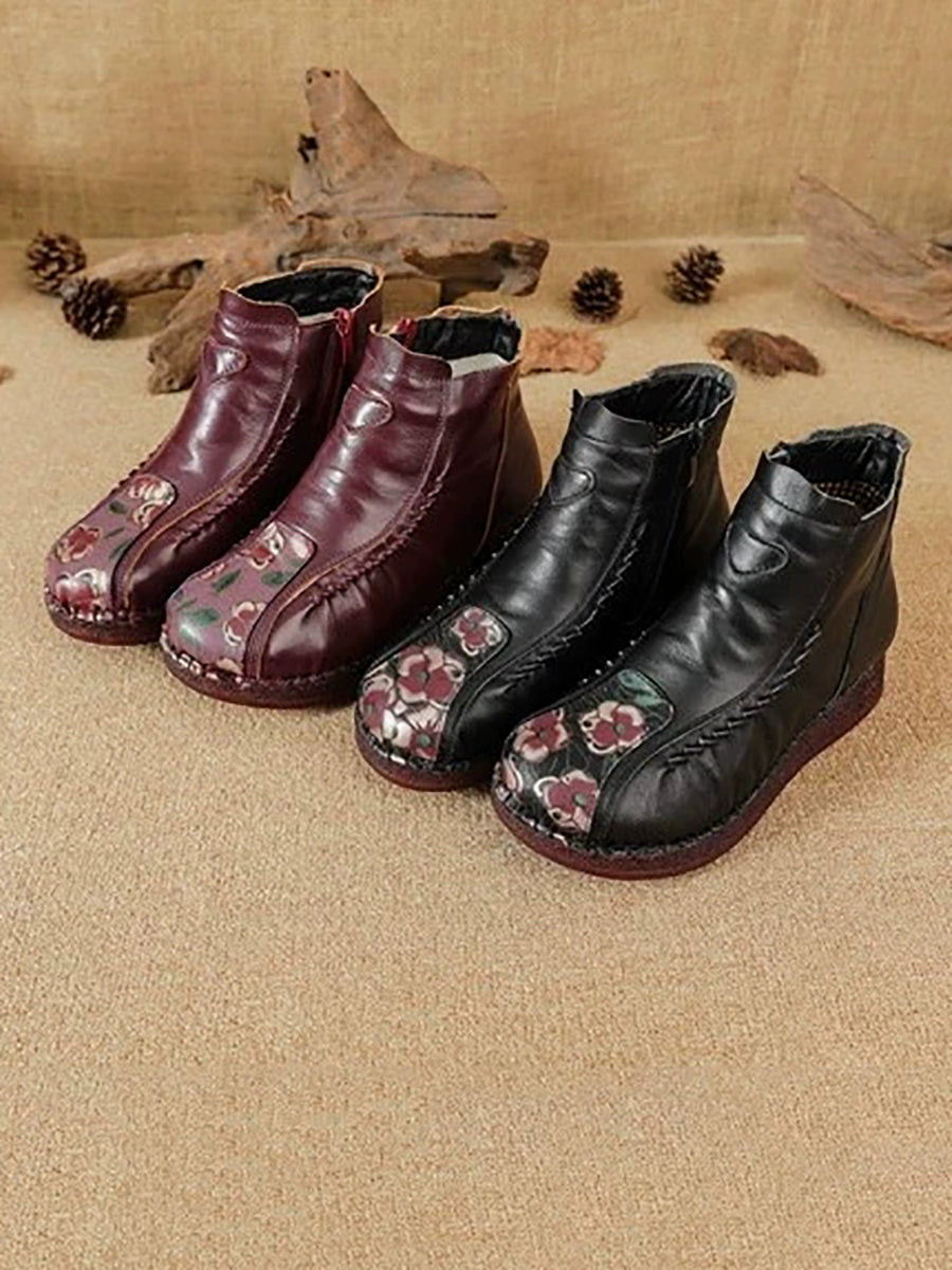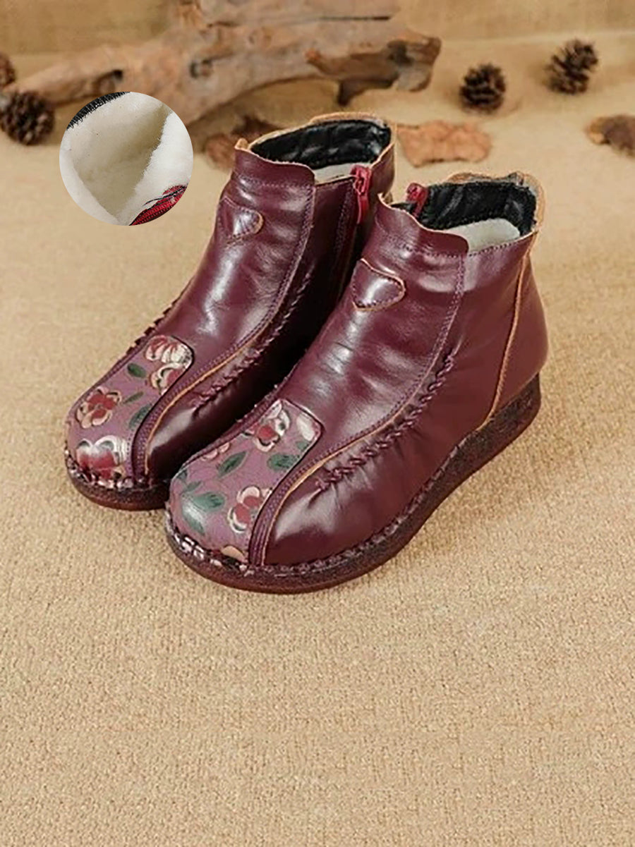 Damen Winter Stiefeletten aus Leder mit kunstvollem Blumenmuster