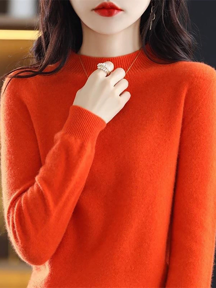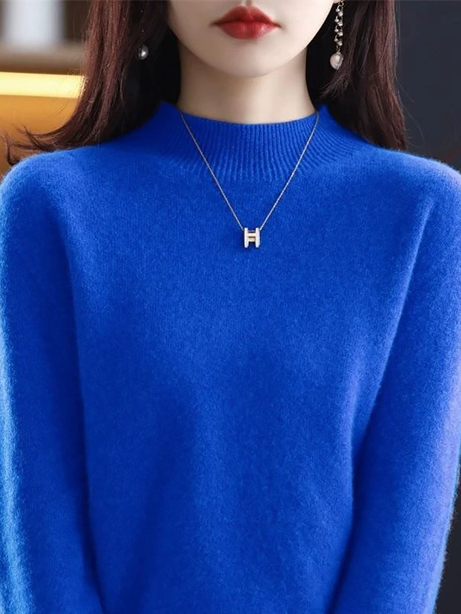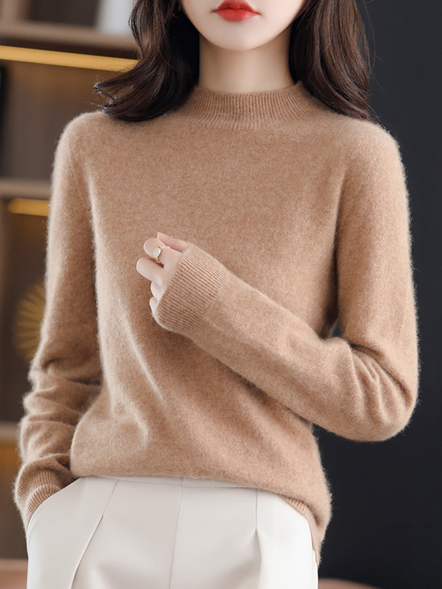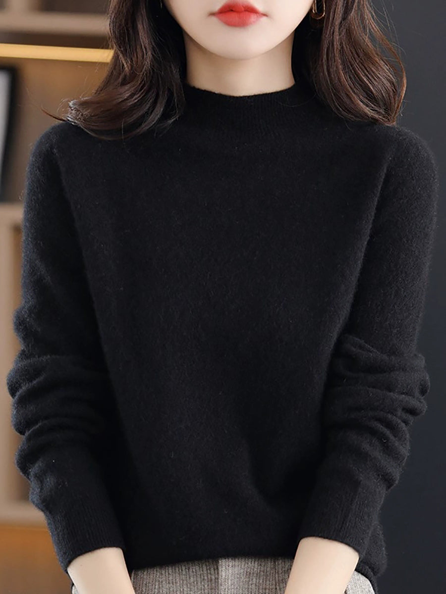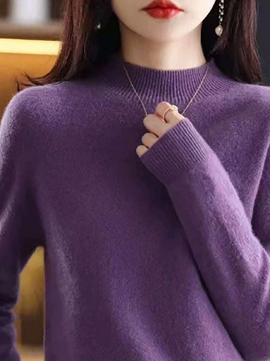 Damen Winterpullover mit Stehkragen, einfarbig, künstlerisch gestaltet