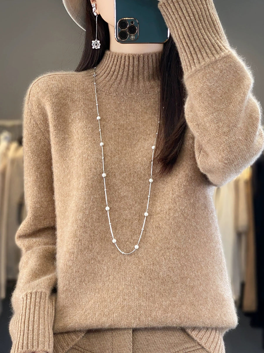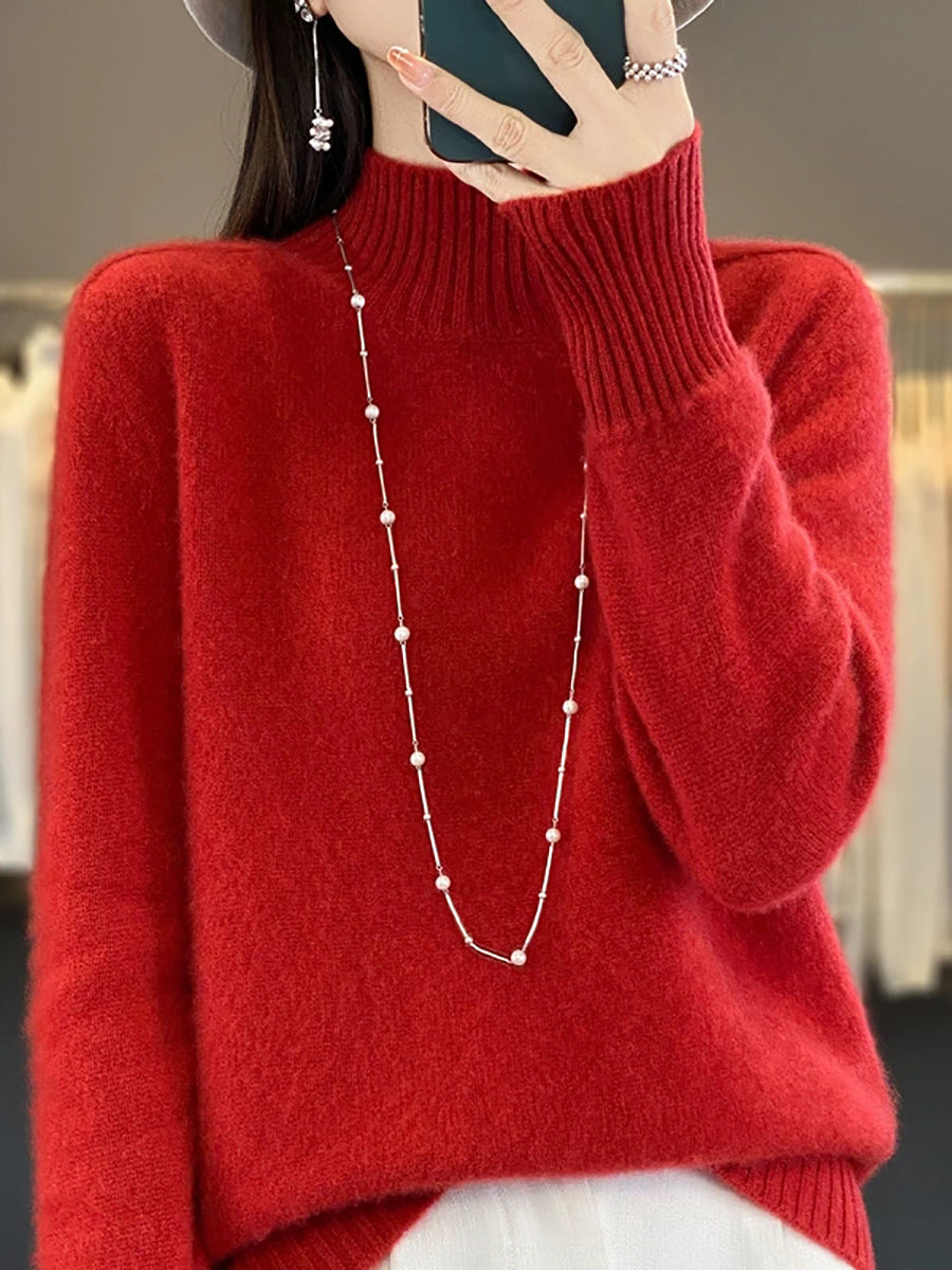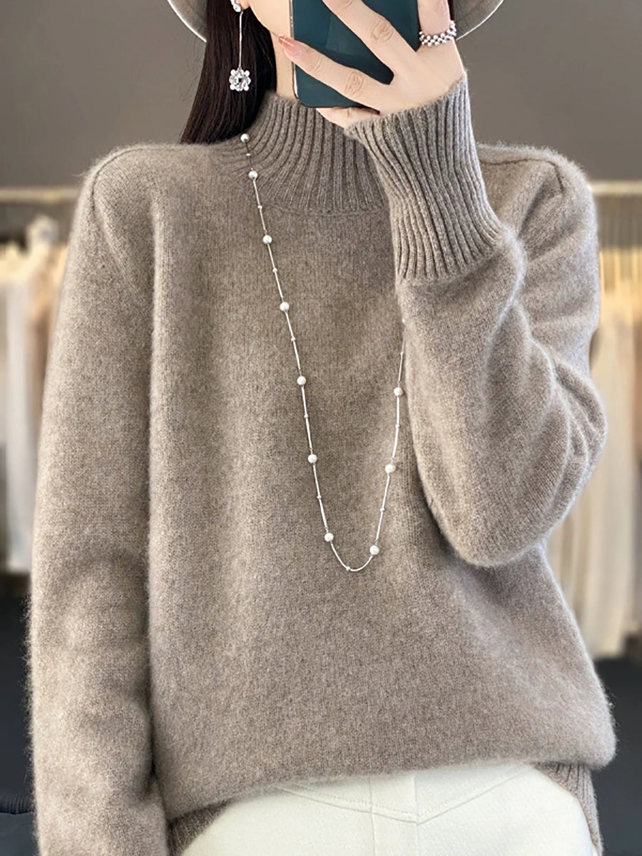 Damen Winter Casual Halb-Rollkragenpullover in Unifarben