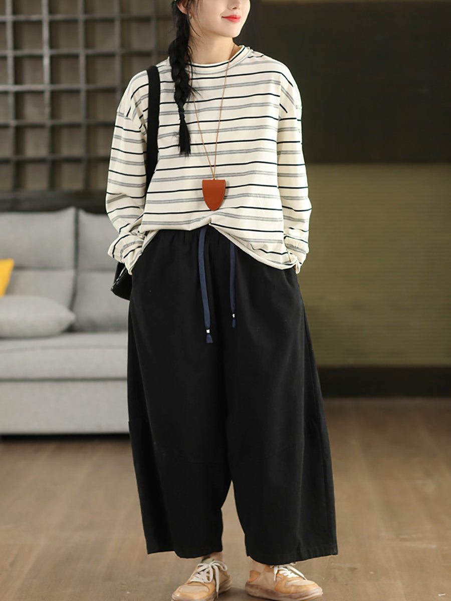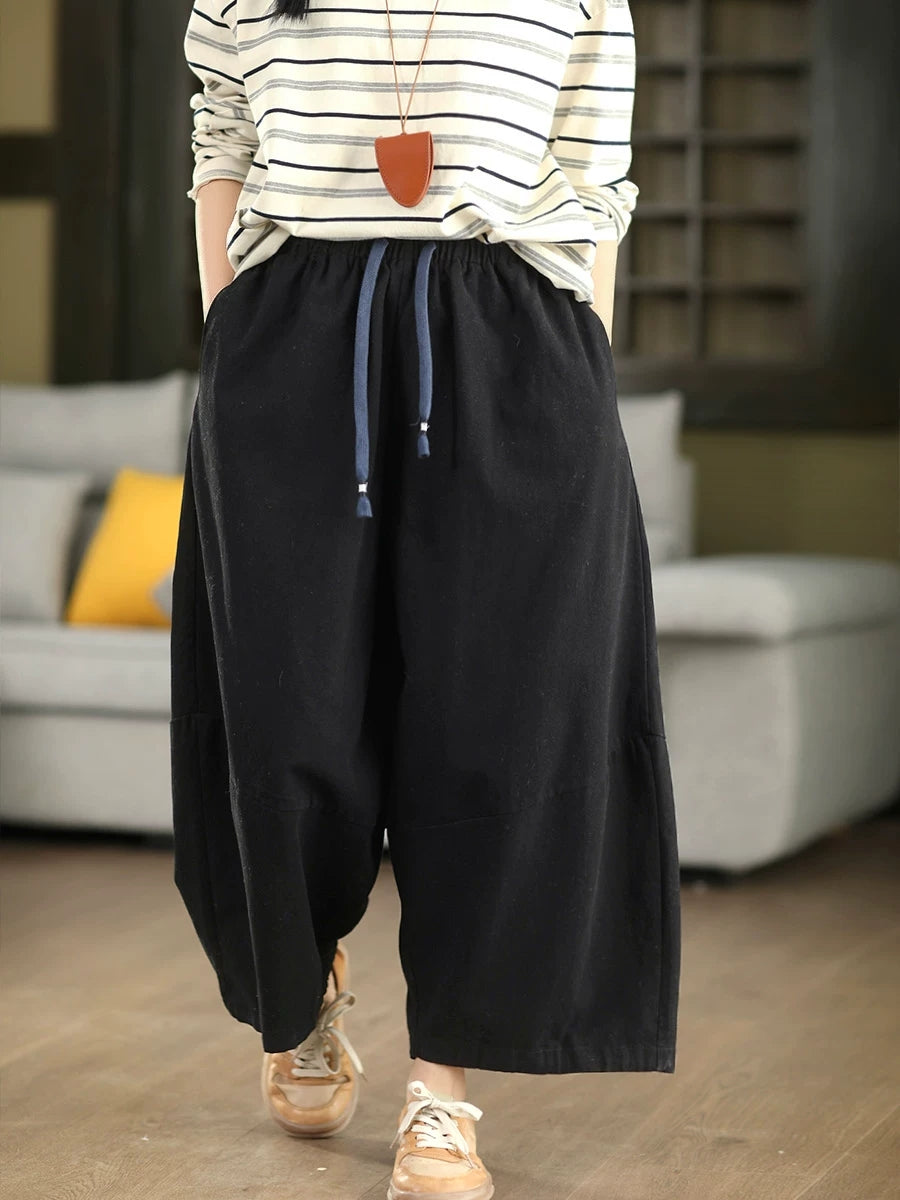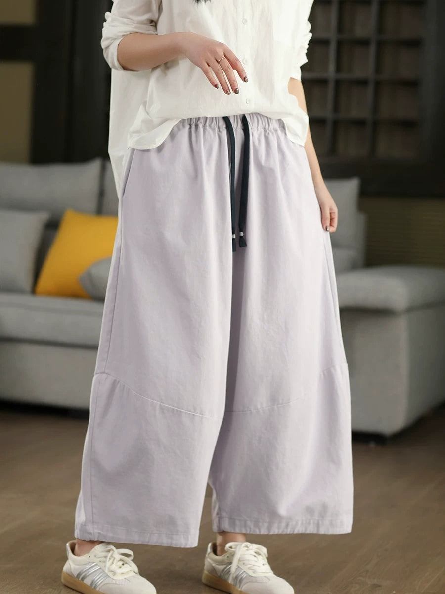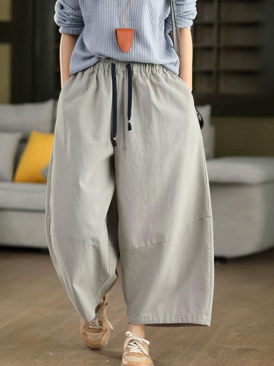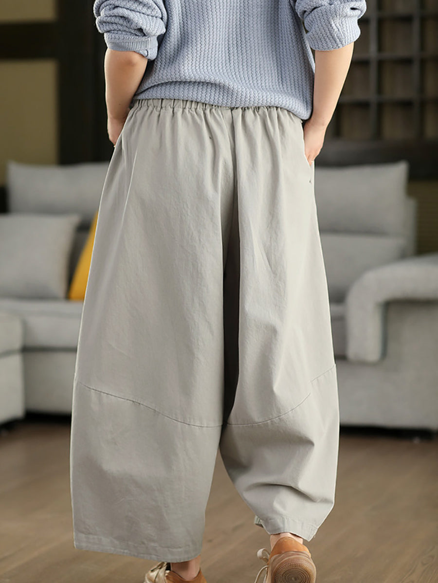 Damen Winter Freizeithose in Unifarbe aus 100% Baumwolle mit weitem Bein