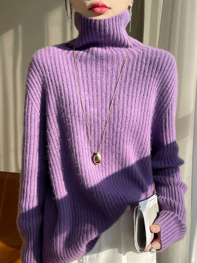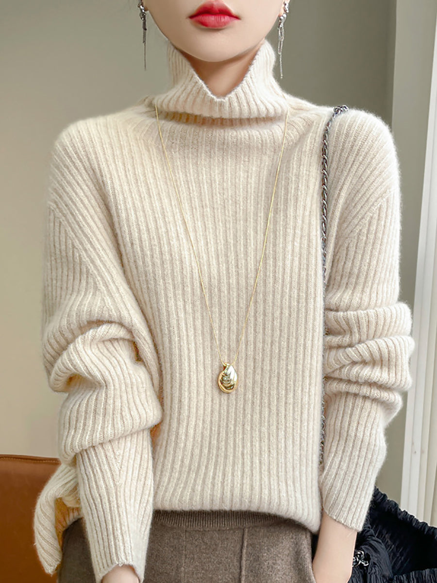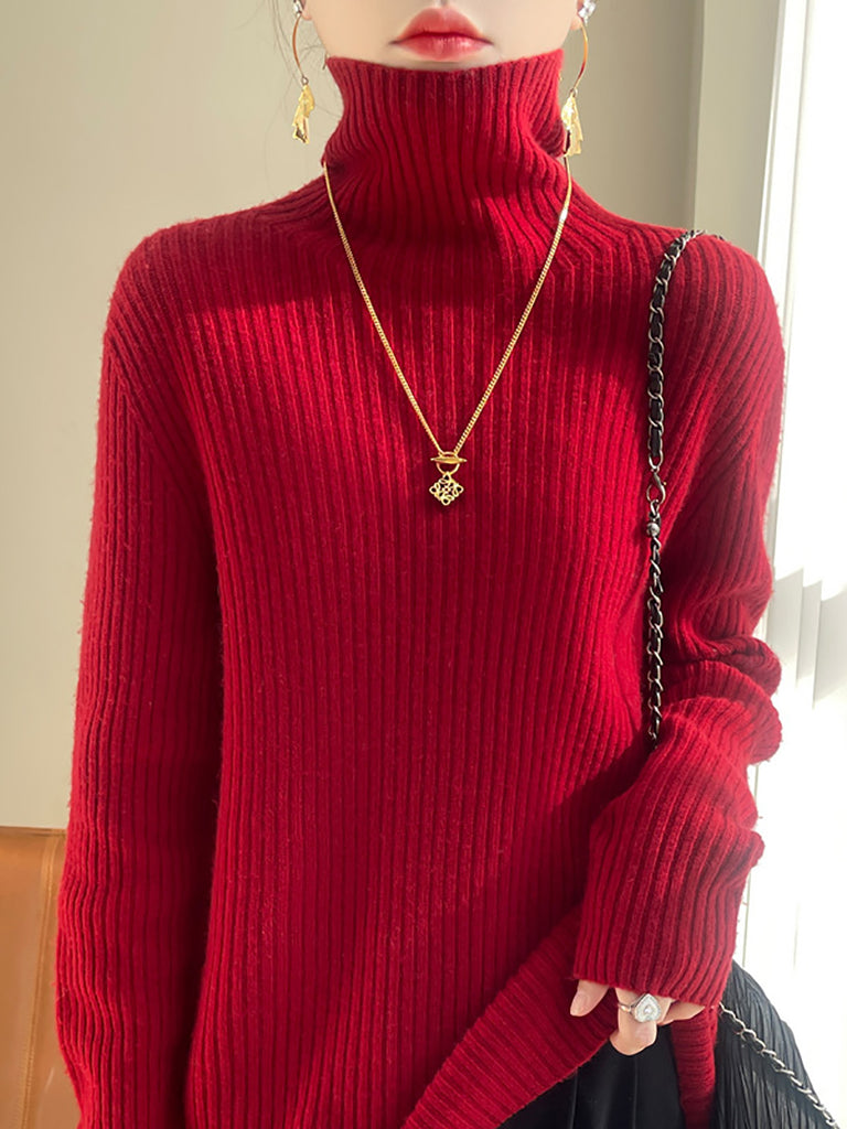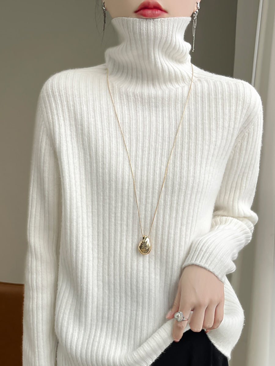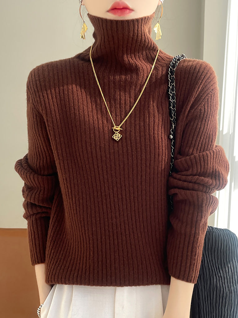 Damen Winter Casual Einfarbiger Strickpullover mit Rollkragen