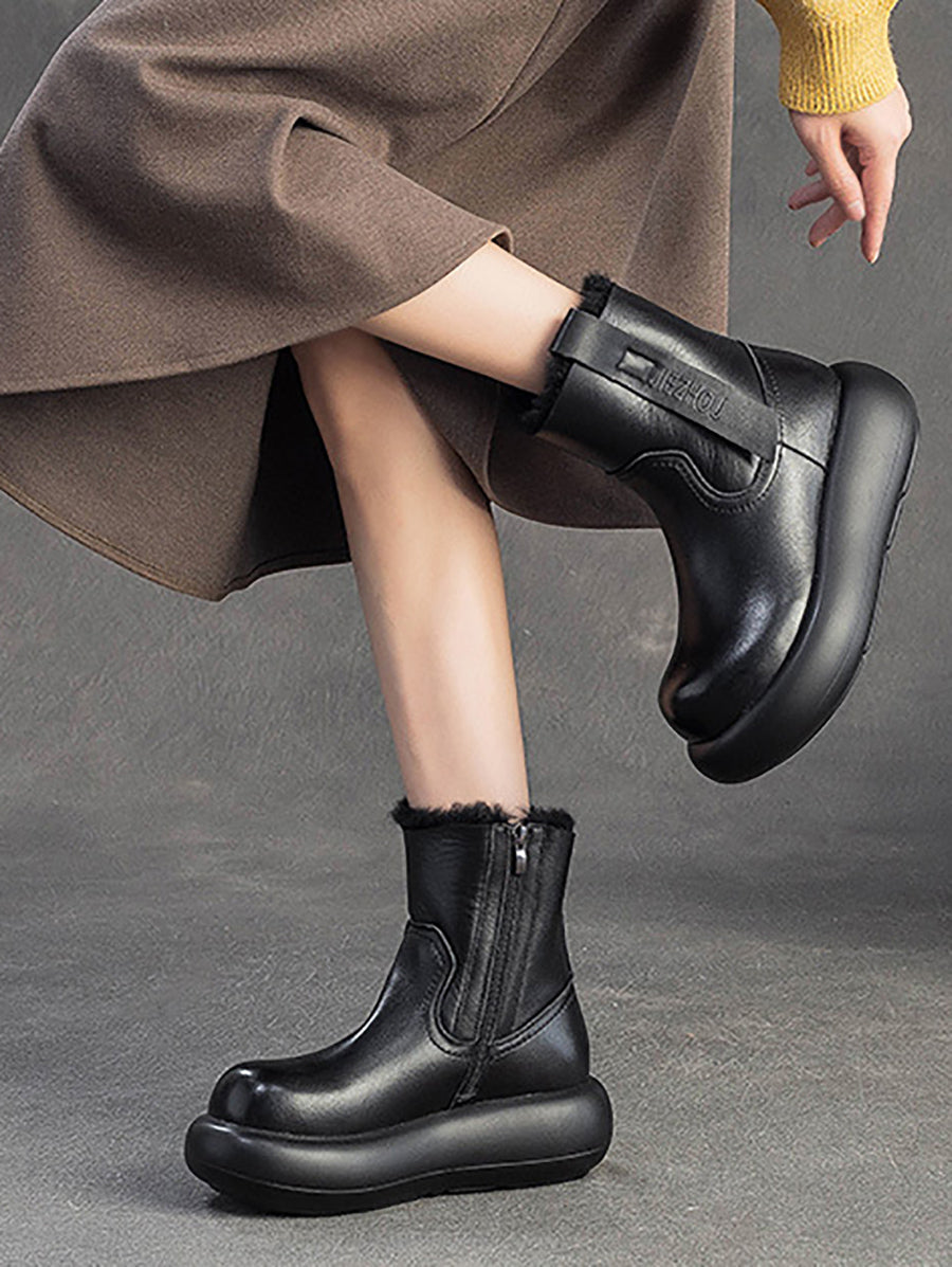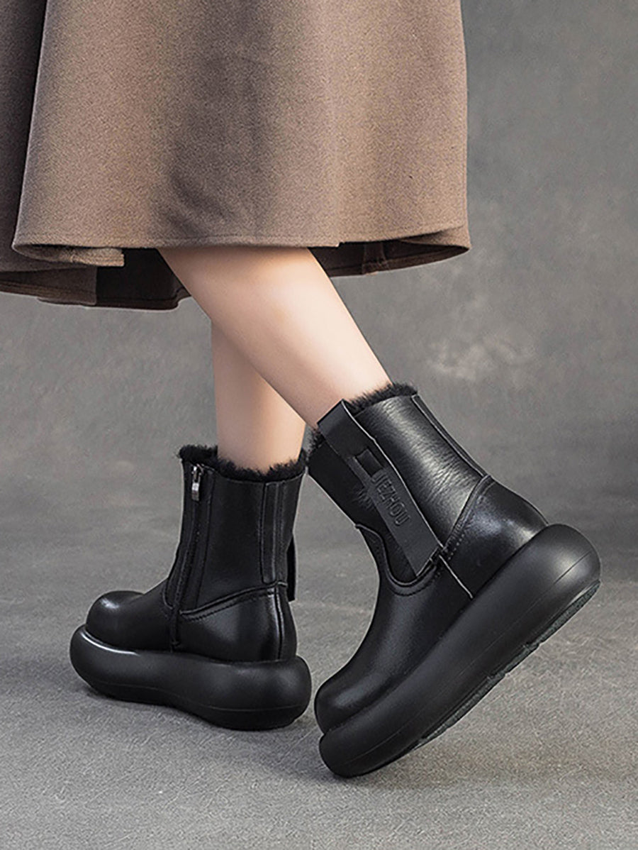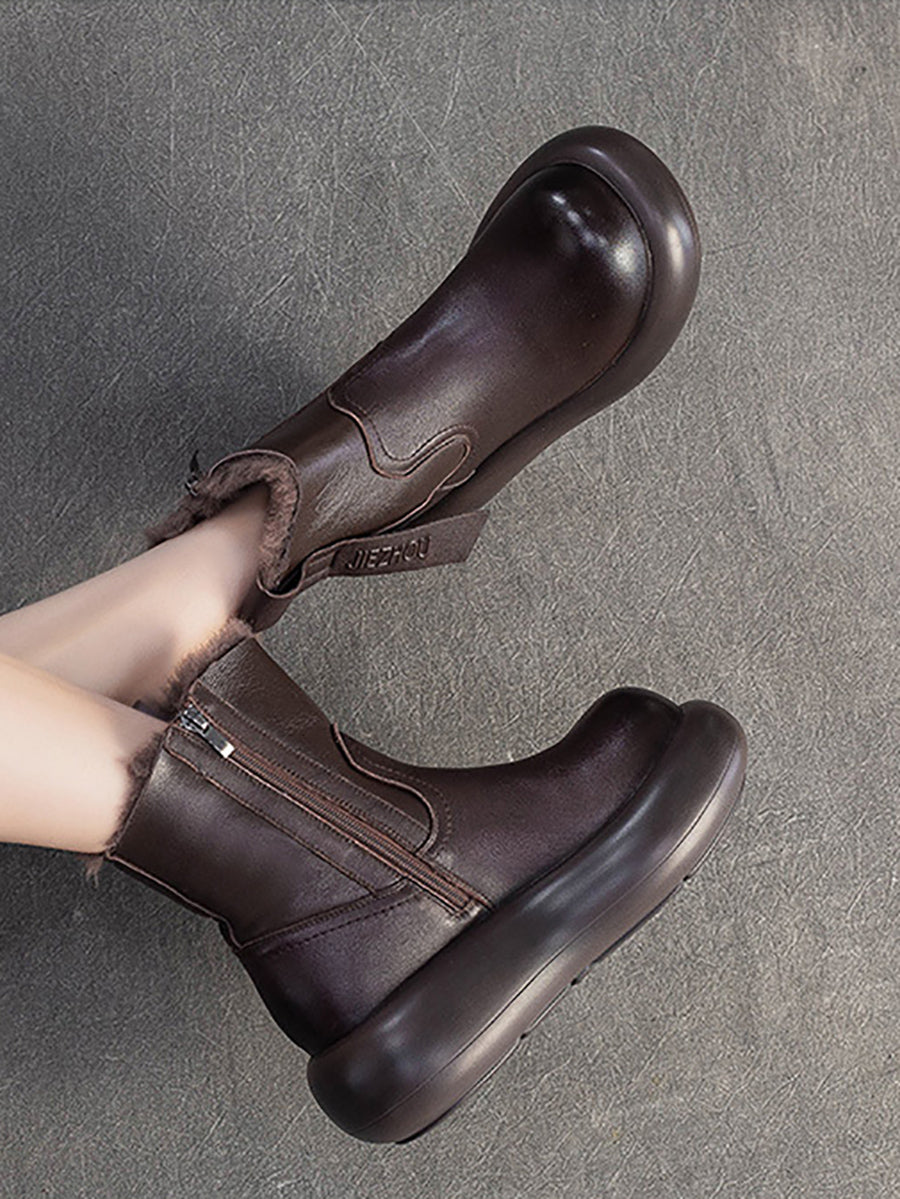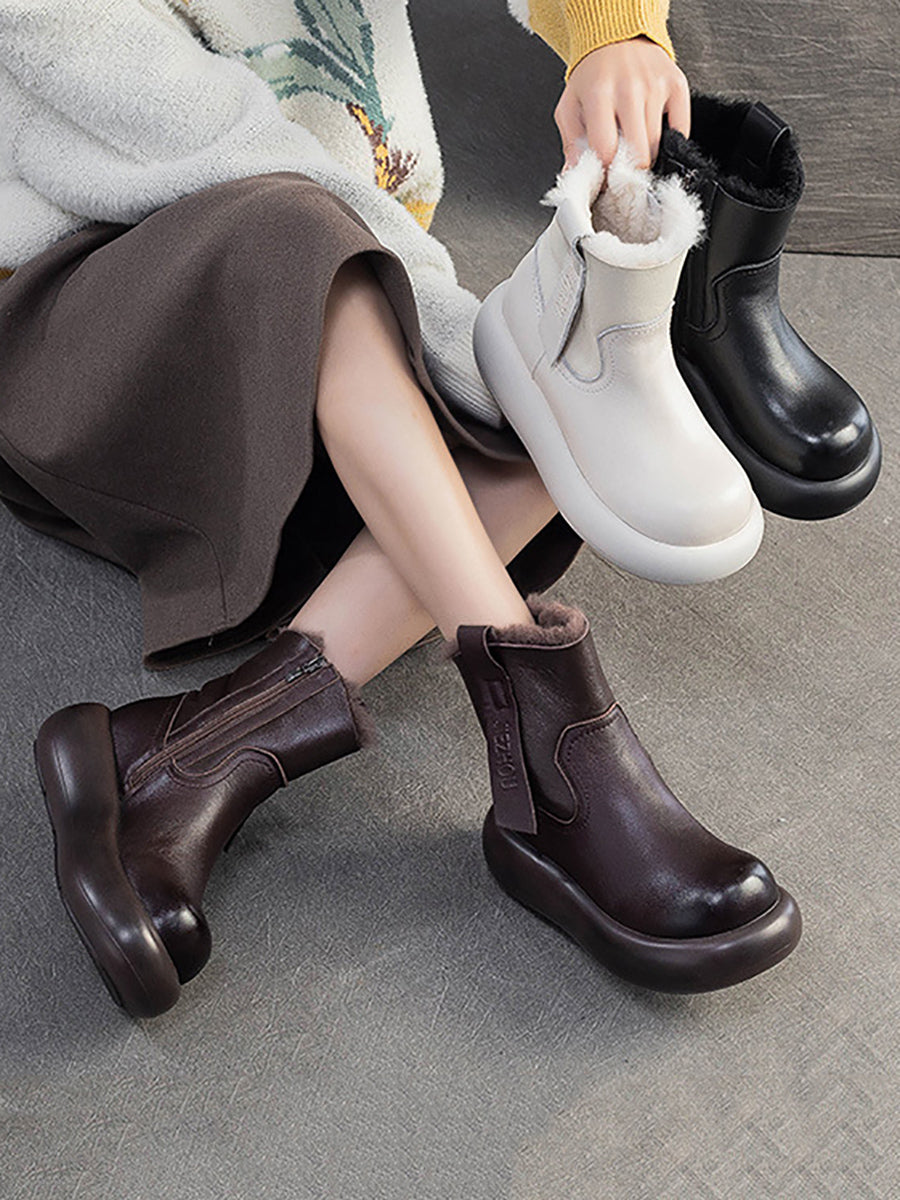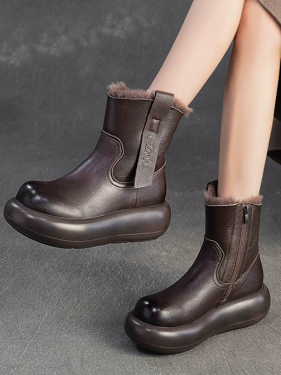Damen-Winterstiefel aus echtem Leder mit Fleecefutter