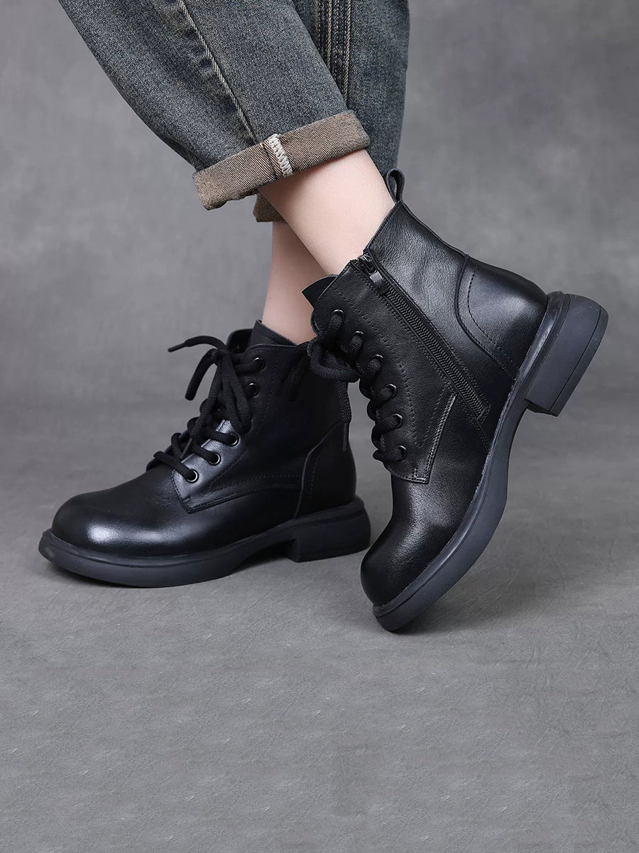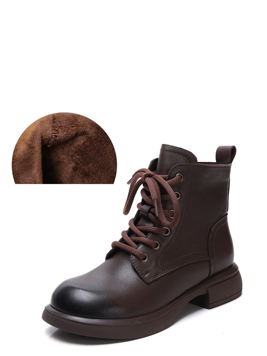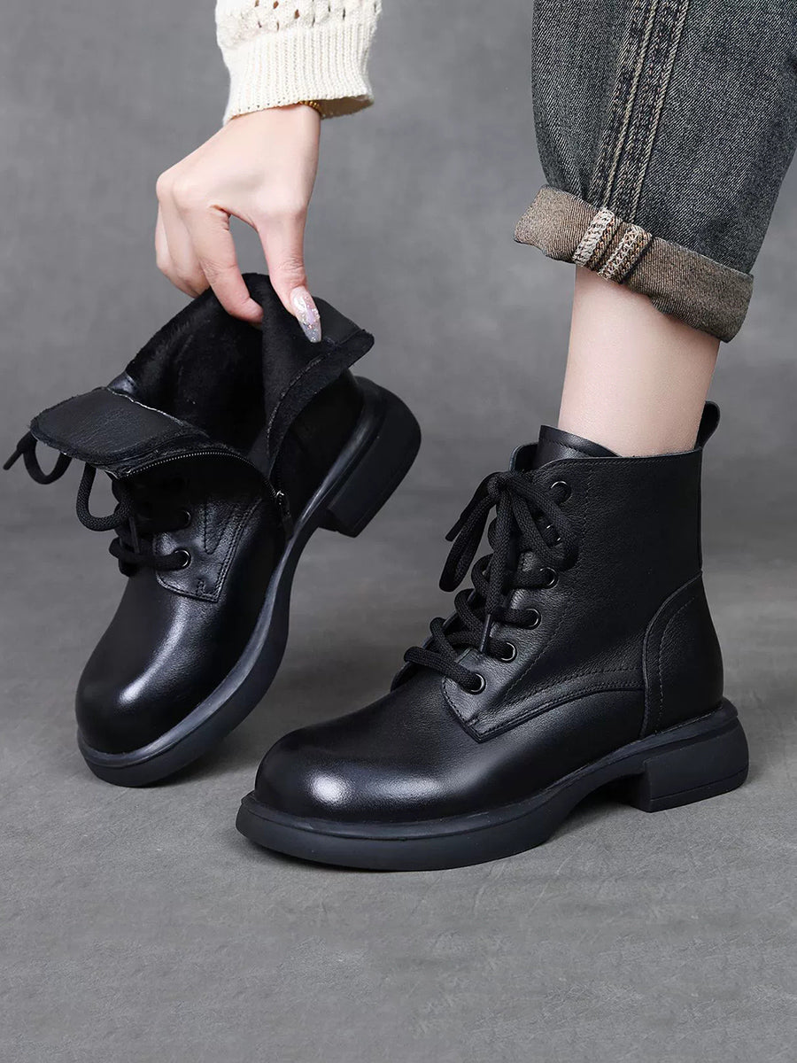 Damen-Winterstiefel aus echtem Leder, niedriger Absatz, Martin-Stil