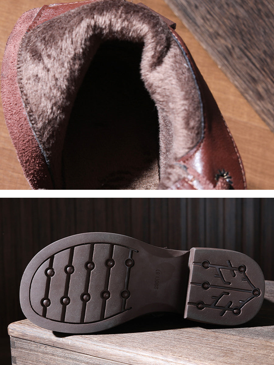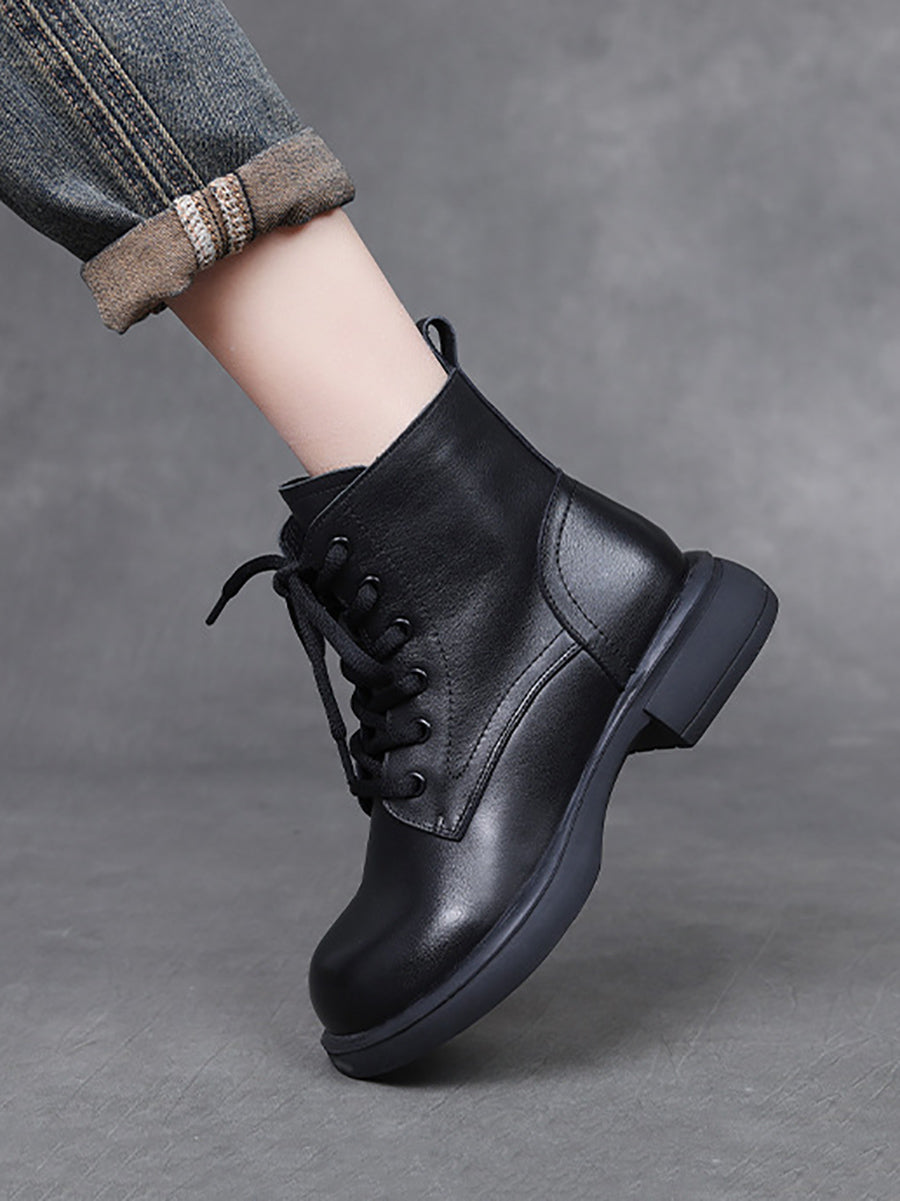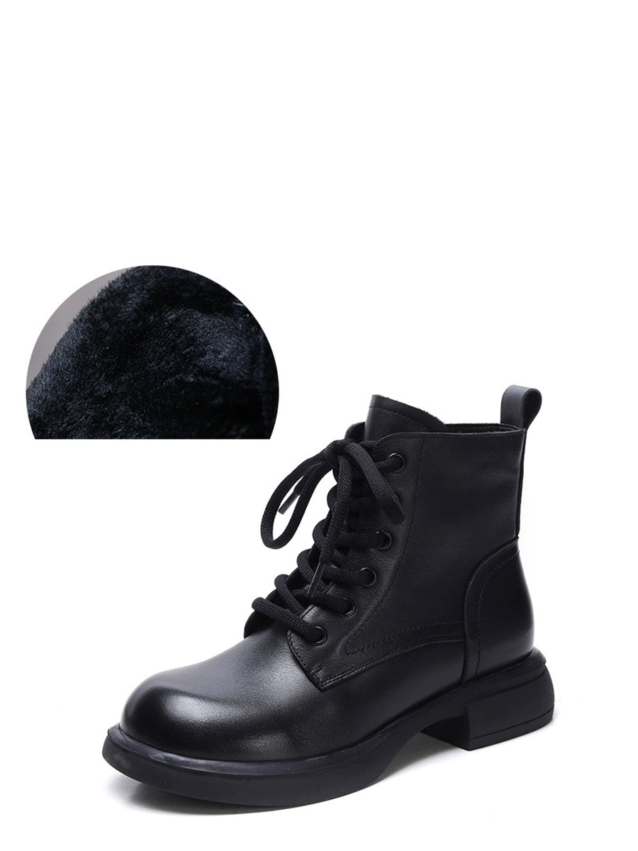 Damen-Winterstiefel aus echtem Leder, niedriger Absatz, Martin-Stil