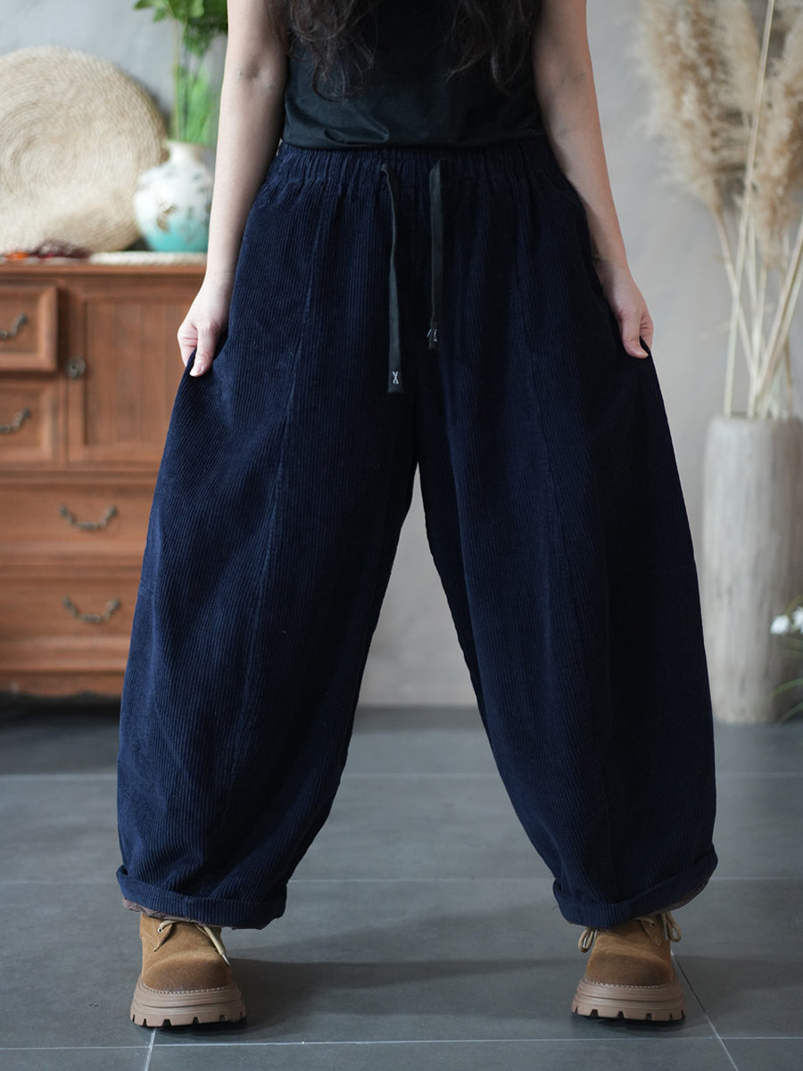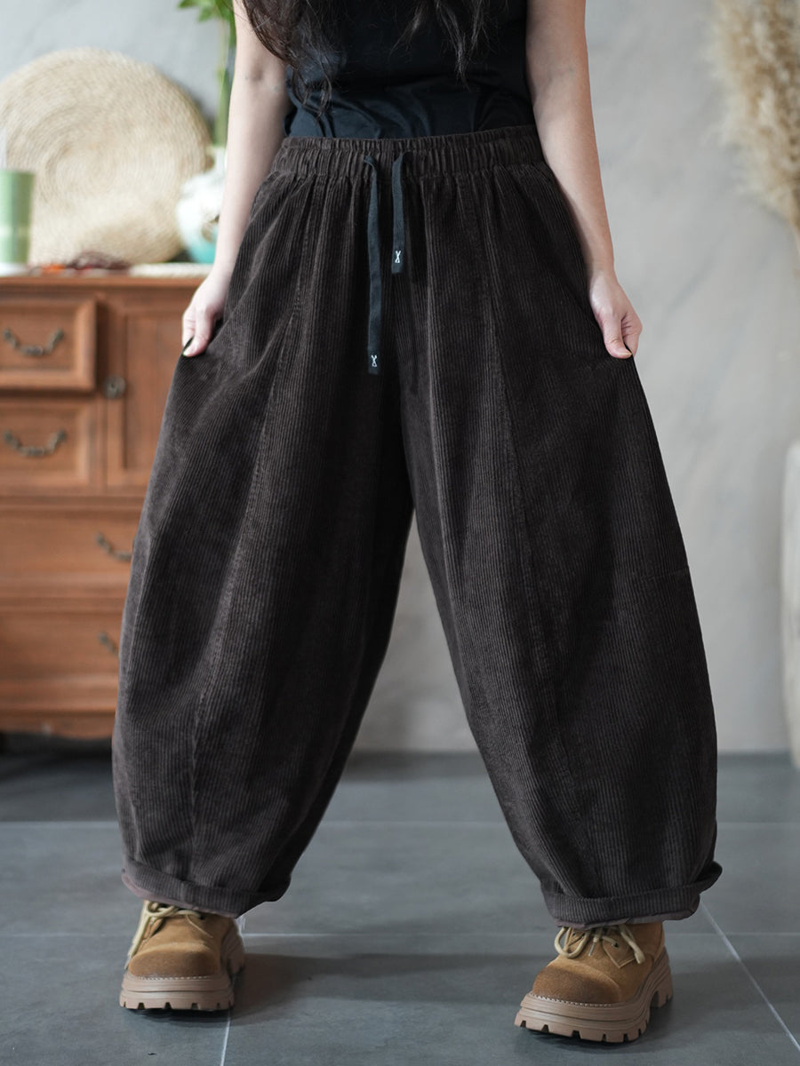 Damen Winter Retro Cord Haremshose in Unifarben