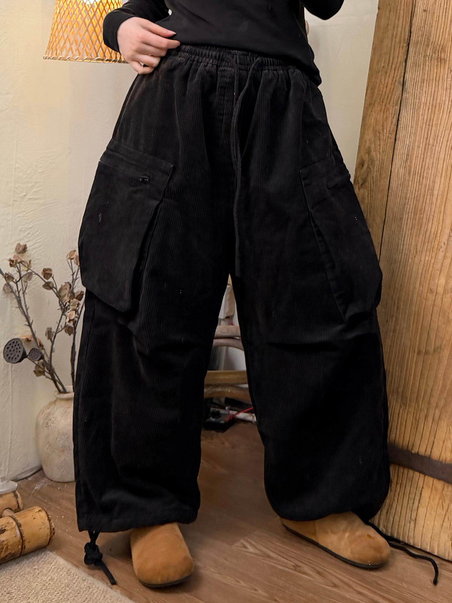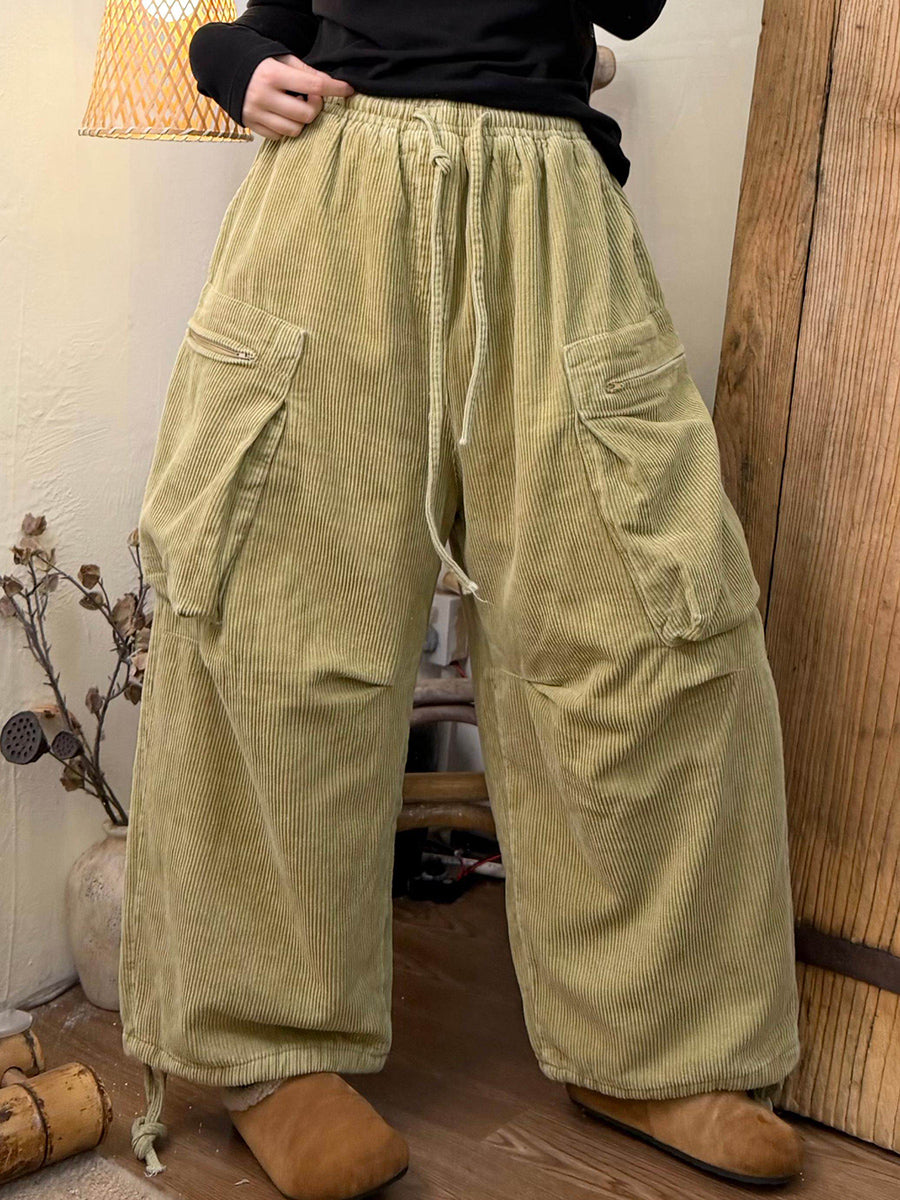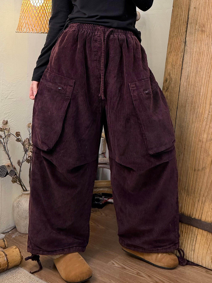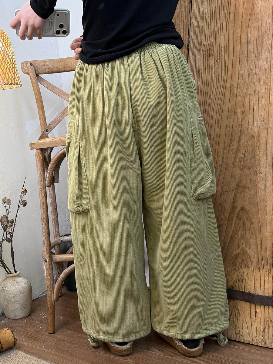 Damen Winter Retro Cordhose in Unifarben mit weitem Bein