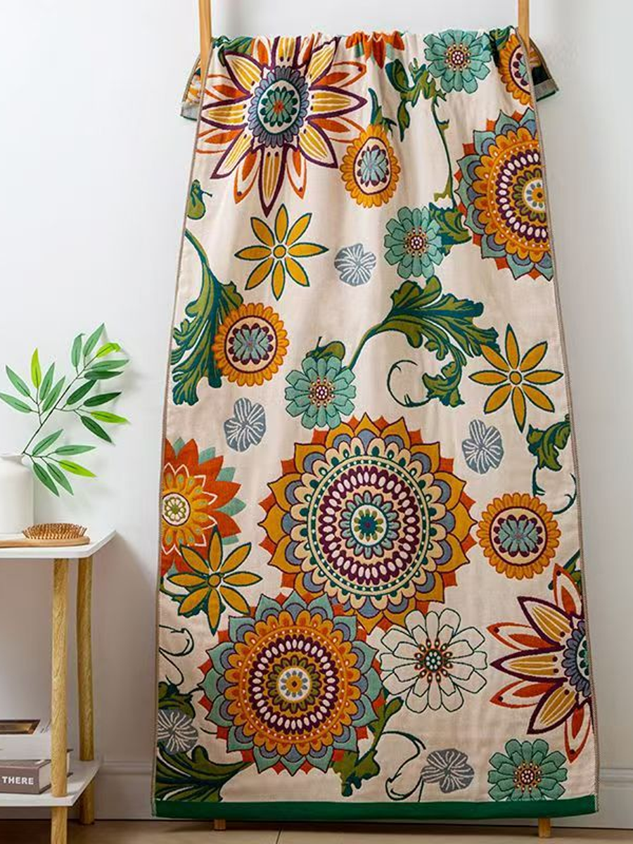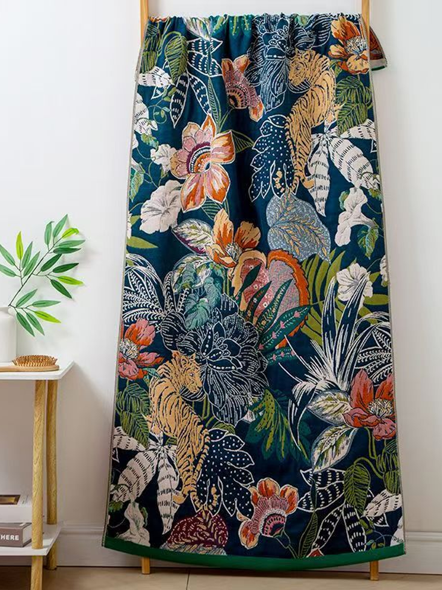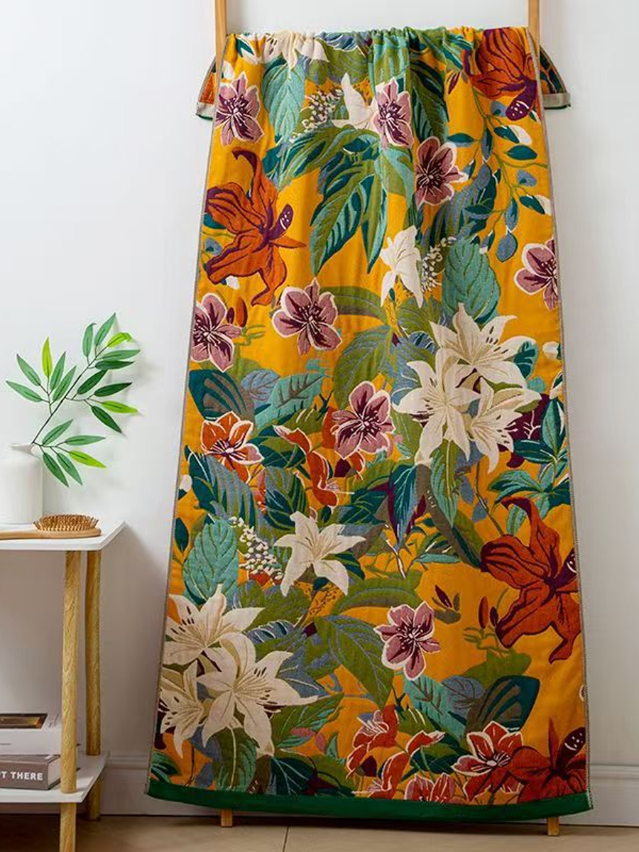 Badetuch aus Leinen mit floralem Jacquardmuster und Quasten