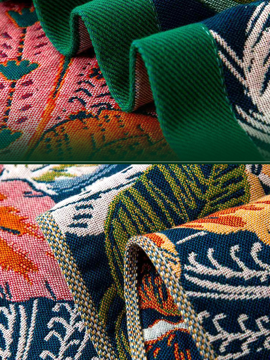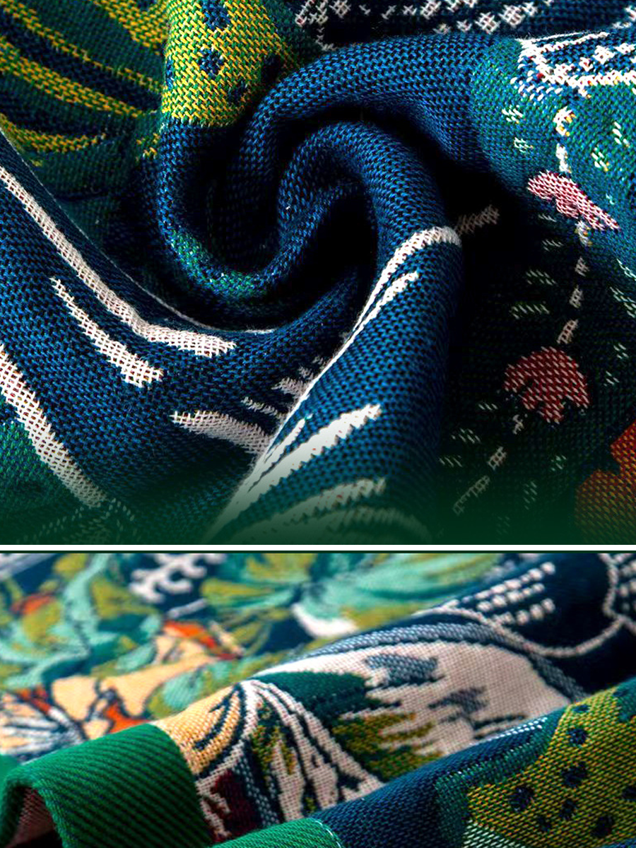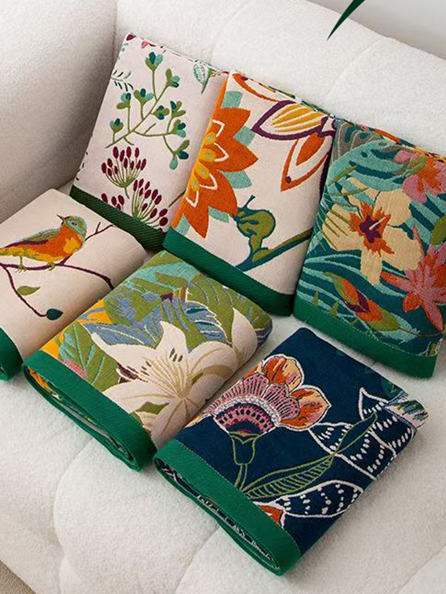 Badetuch aus Leinen mit floralem Jacquardmuster und Quasten