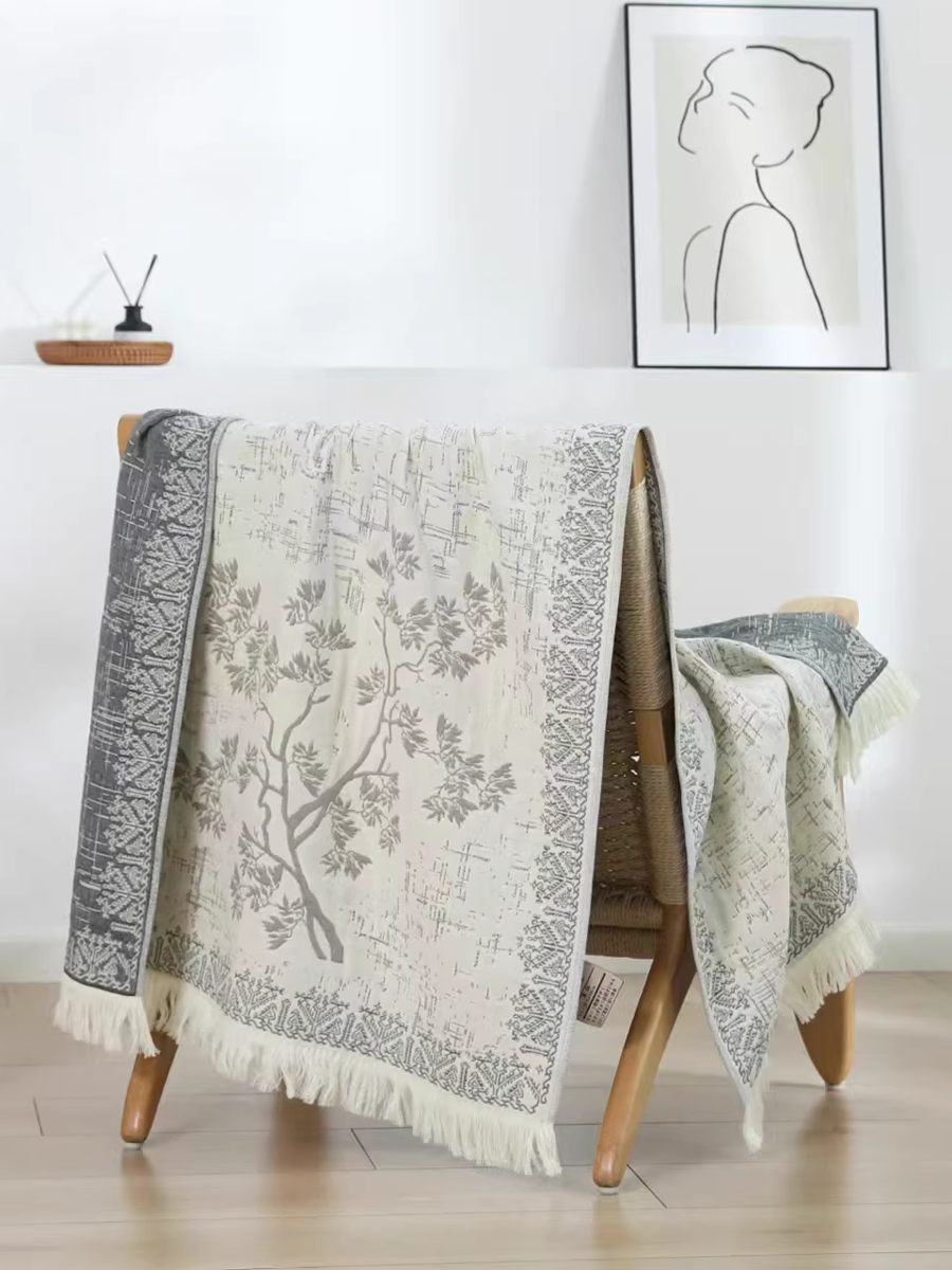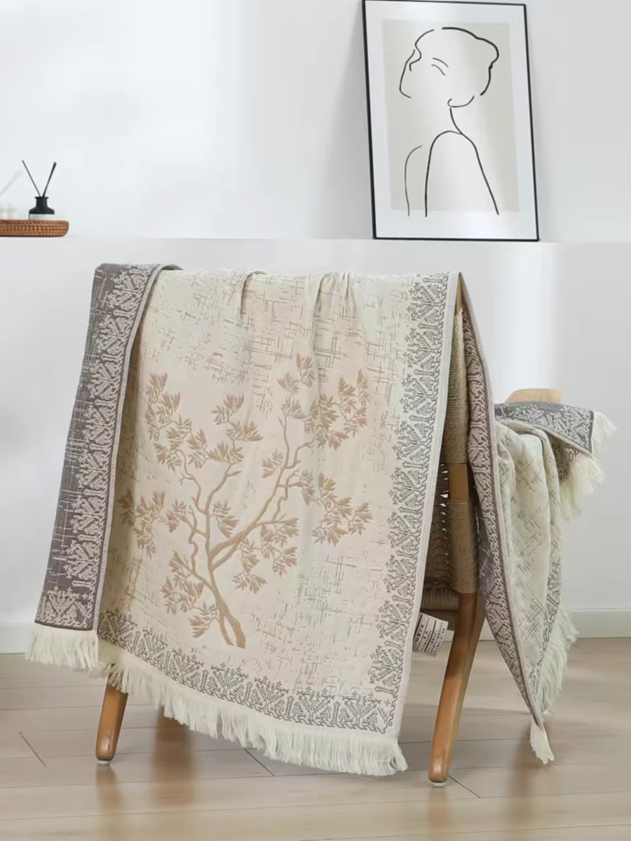 Badetuch aus Leinen mit floralem Jacquardmuster und Quasten